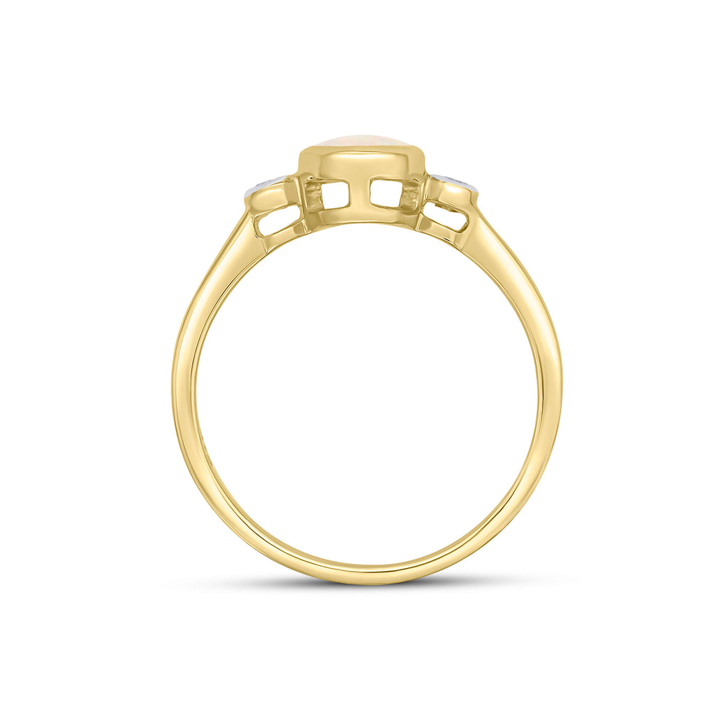 9CT Yellow Gold Oval Opal & Diamond Three Stone Rubover Ring