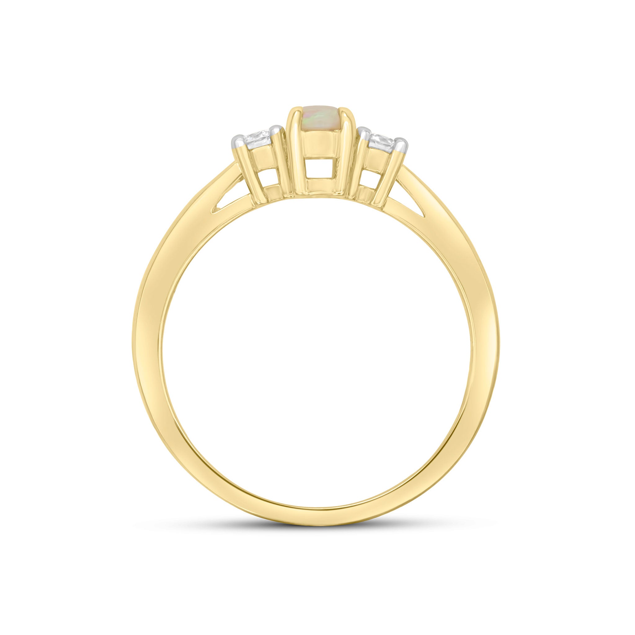 9CT Yellow Gold Oval Opal & Round Diamond Claw Three Stone Ring 6x4mm