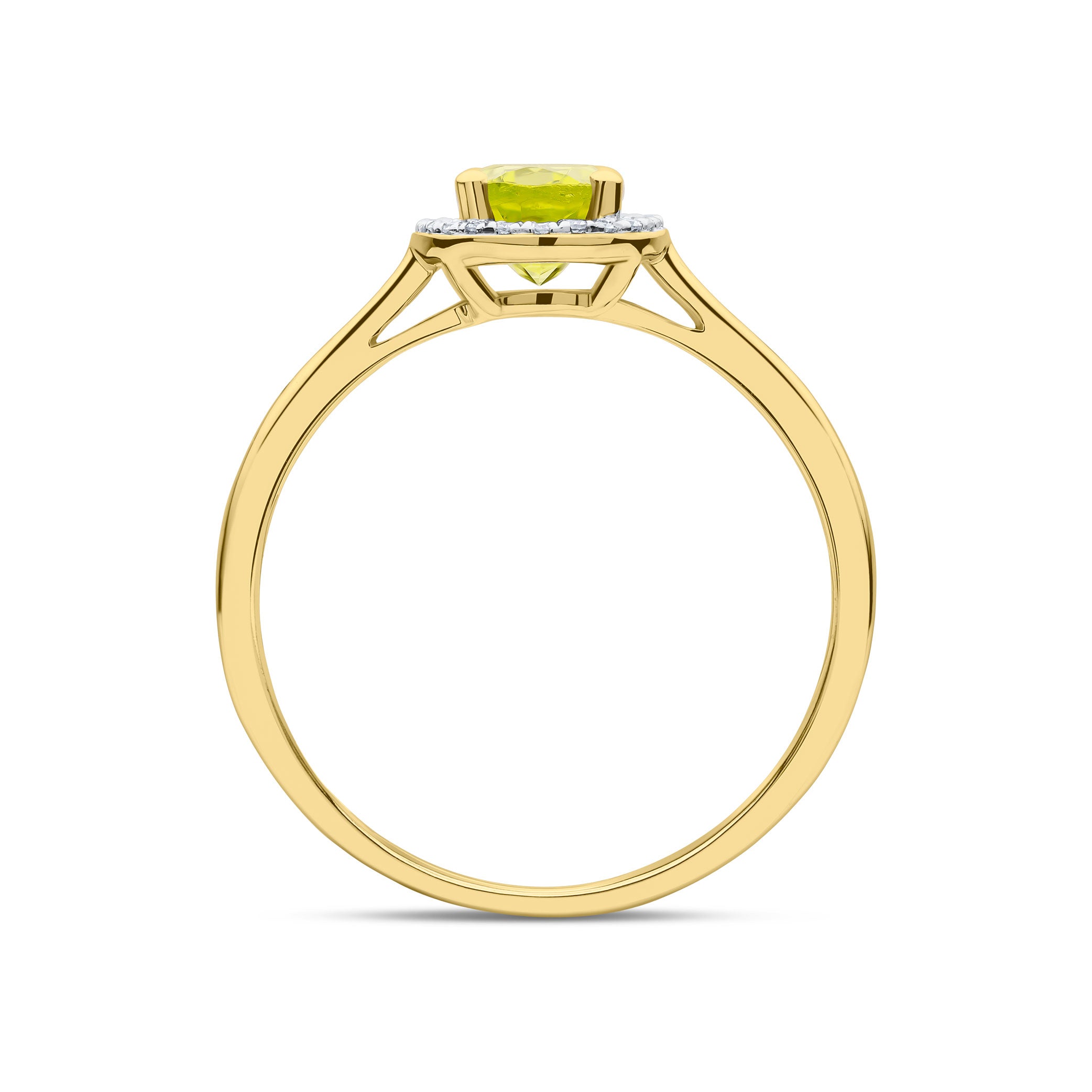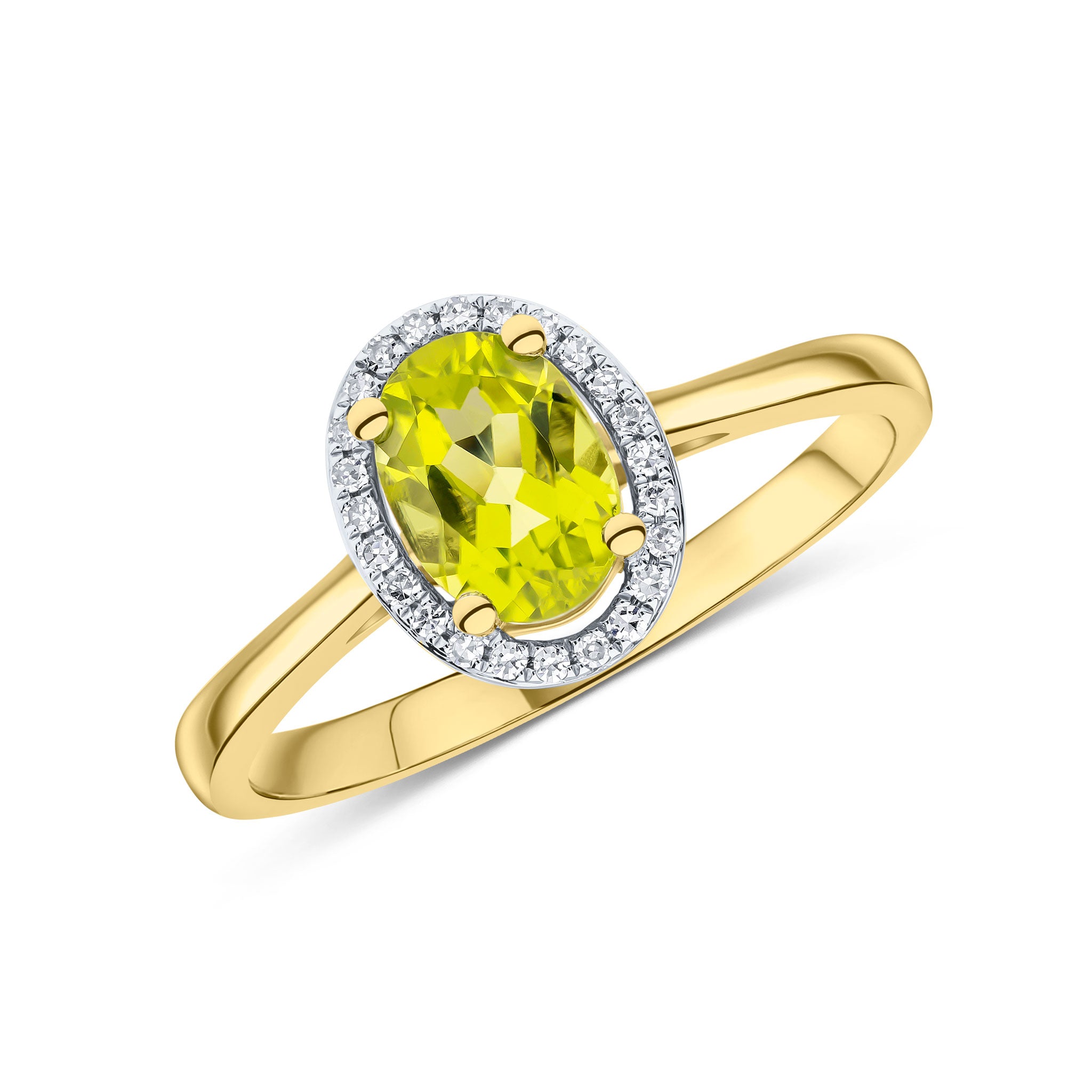 9CT Yellow Gold Oval Peridot & Diamond Halo Cluster Ring 7x5mm