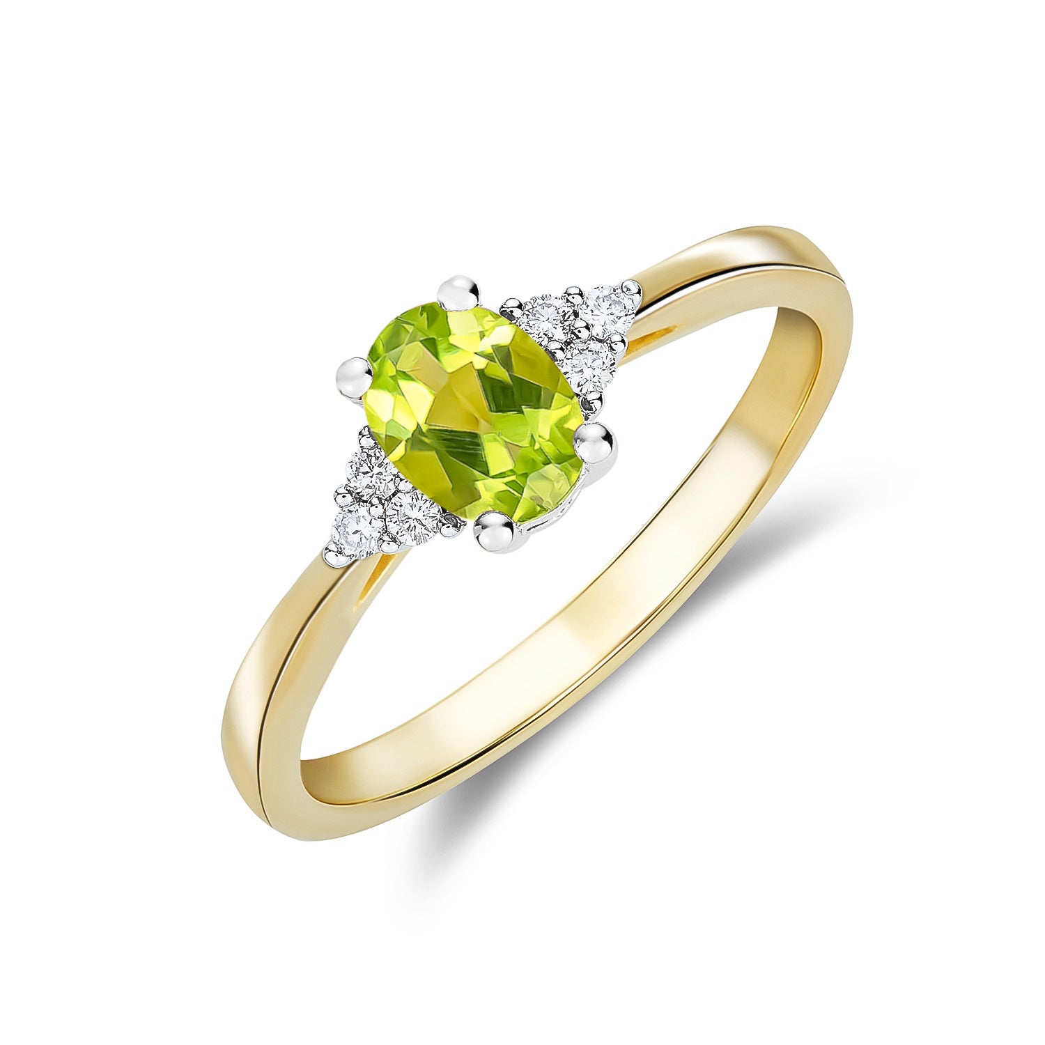 9CT Yellow Gold Oval Peridot & White Gold Diamond Trefoil Ring 7x5mm
