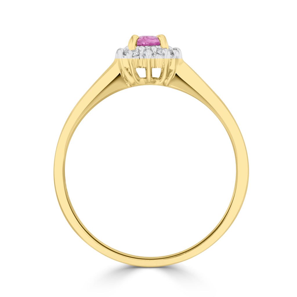 9CT Yellow Gold Oval Pink Sapphire & Diamond Cluster Ring 5x3mm