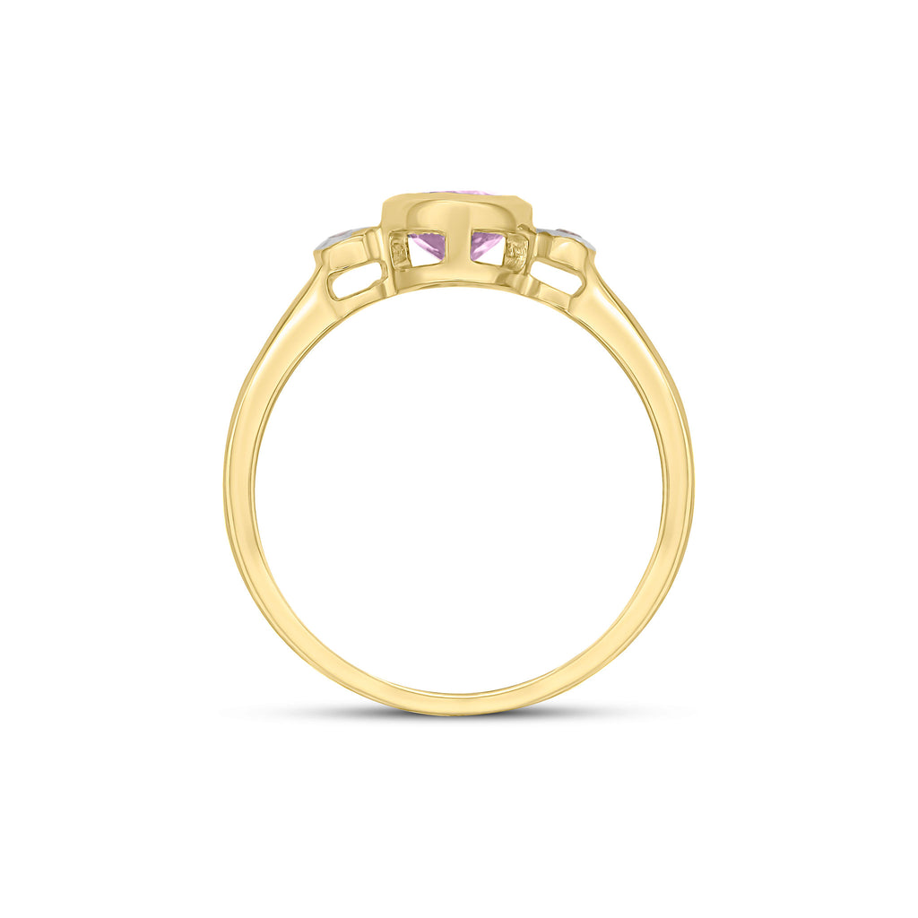 9CT Yellow Gold Oval Pink Tourmaline & Round Diamond Three Stone Rubover Ring