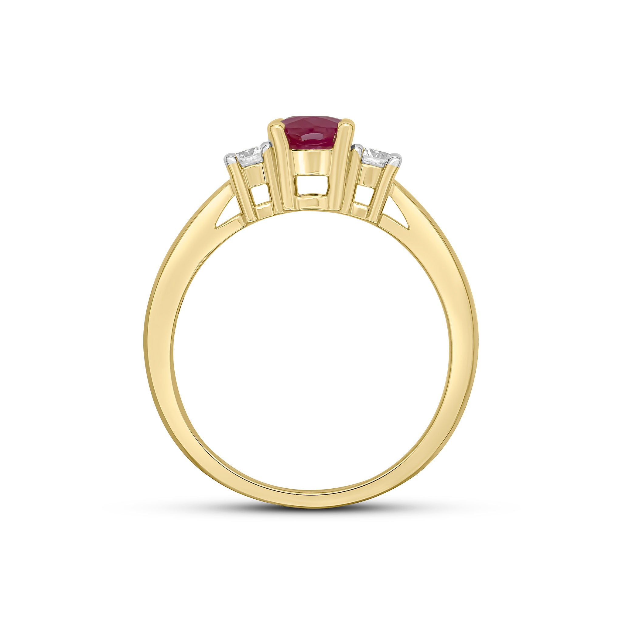 9CT Yellow Gold Oval Ruby & Round Diamond Claw Set Three Stone Ring 7x5mm