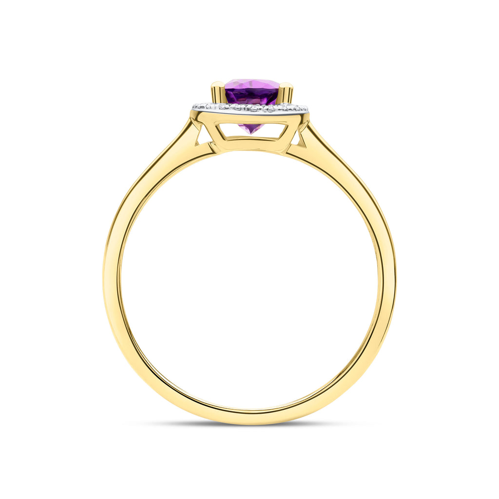 9CT Yellow Gold Pear Shaped Amethyst & Diamond Halo Cluster Ring 7x5mm