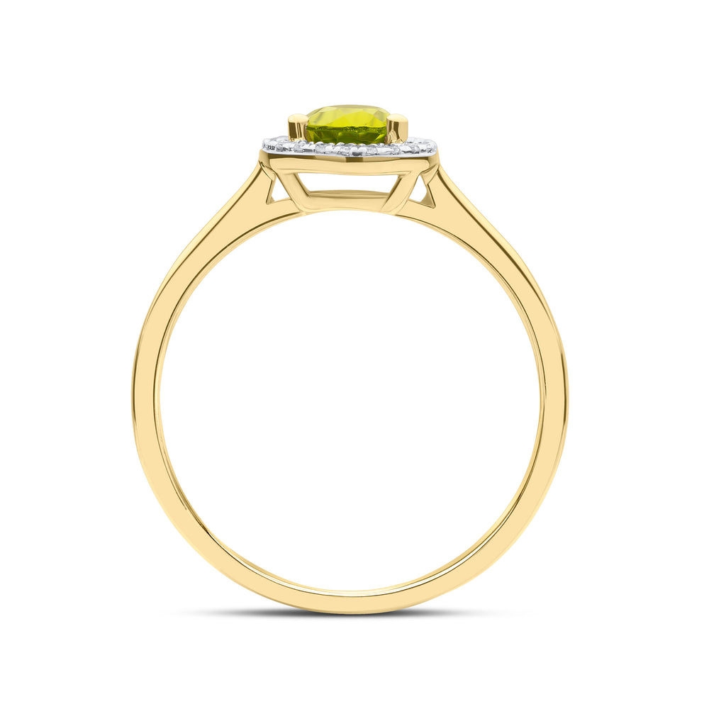 9CT Yellow Gold Pear Shaped Peridot & Diamond Halo Cluster Ring 7x5mm