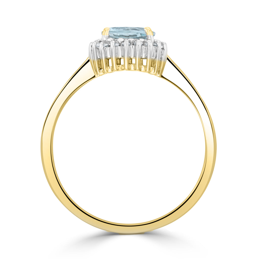 9CT Yellow Gold Round Aquamarine & Diamond Cluster Ring 6mm