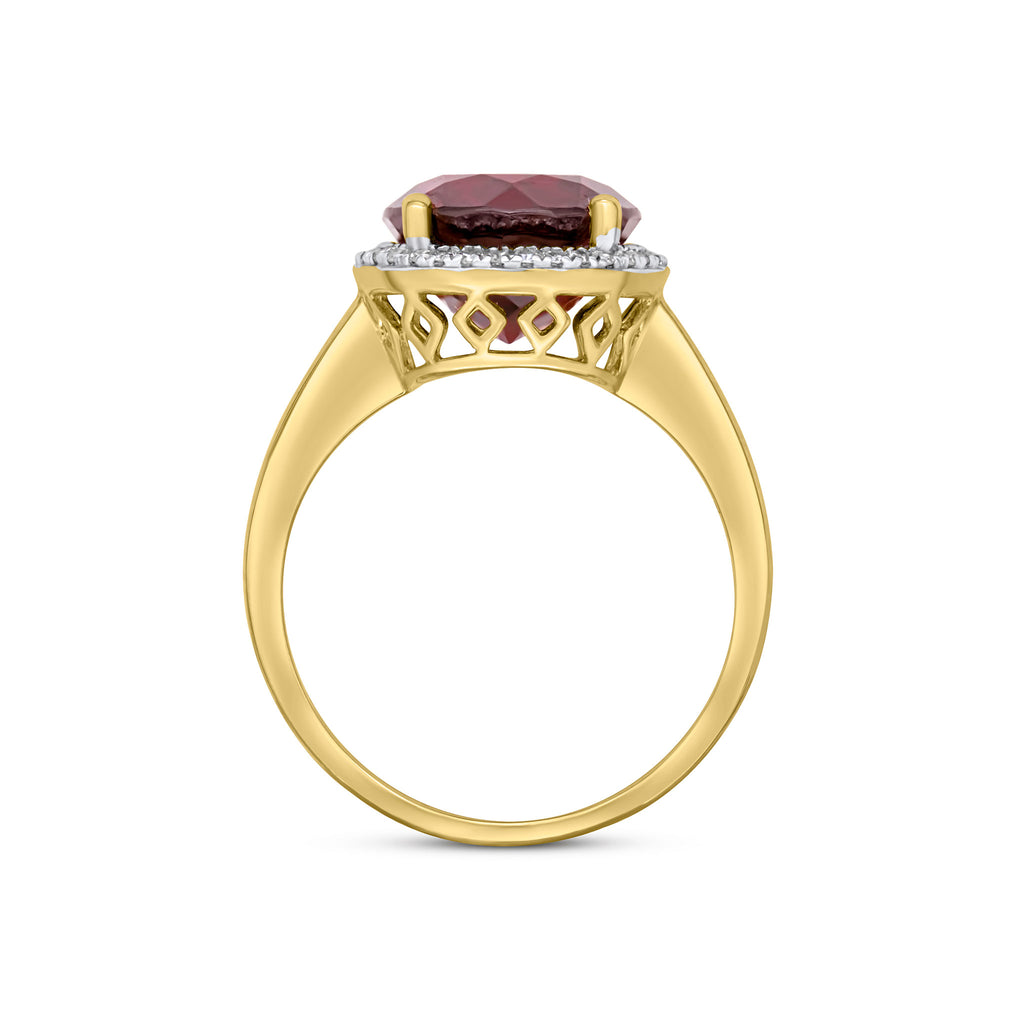 9CT Yellow Gold Round Garnet & Diamond Cluster Ring 10mm