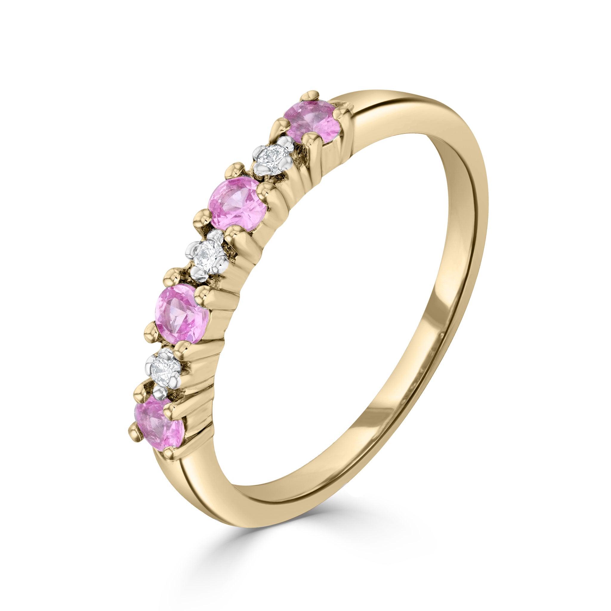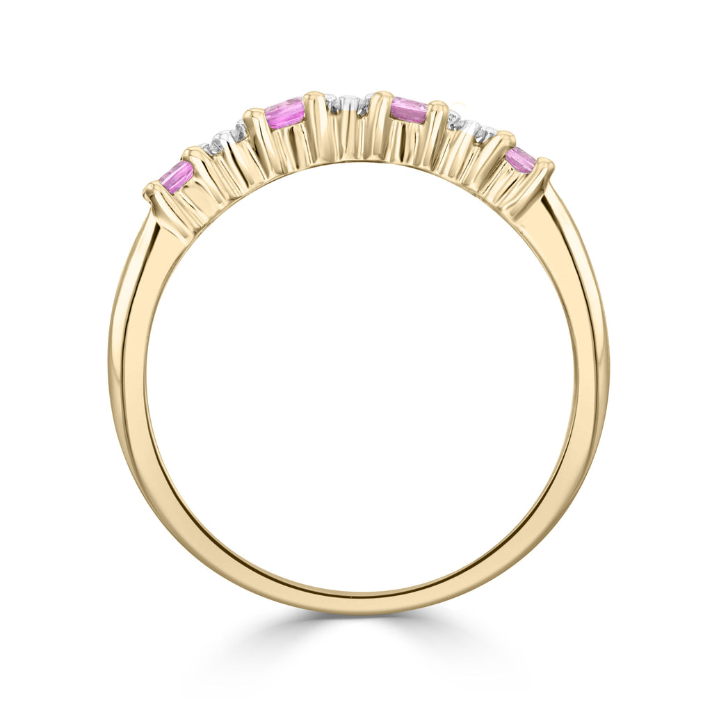 9CT Yellow Gold Round Pink Sapphire & Diamond 7 Stone 1/2 Eternity Ring