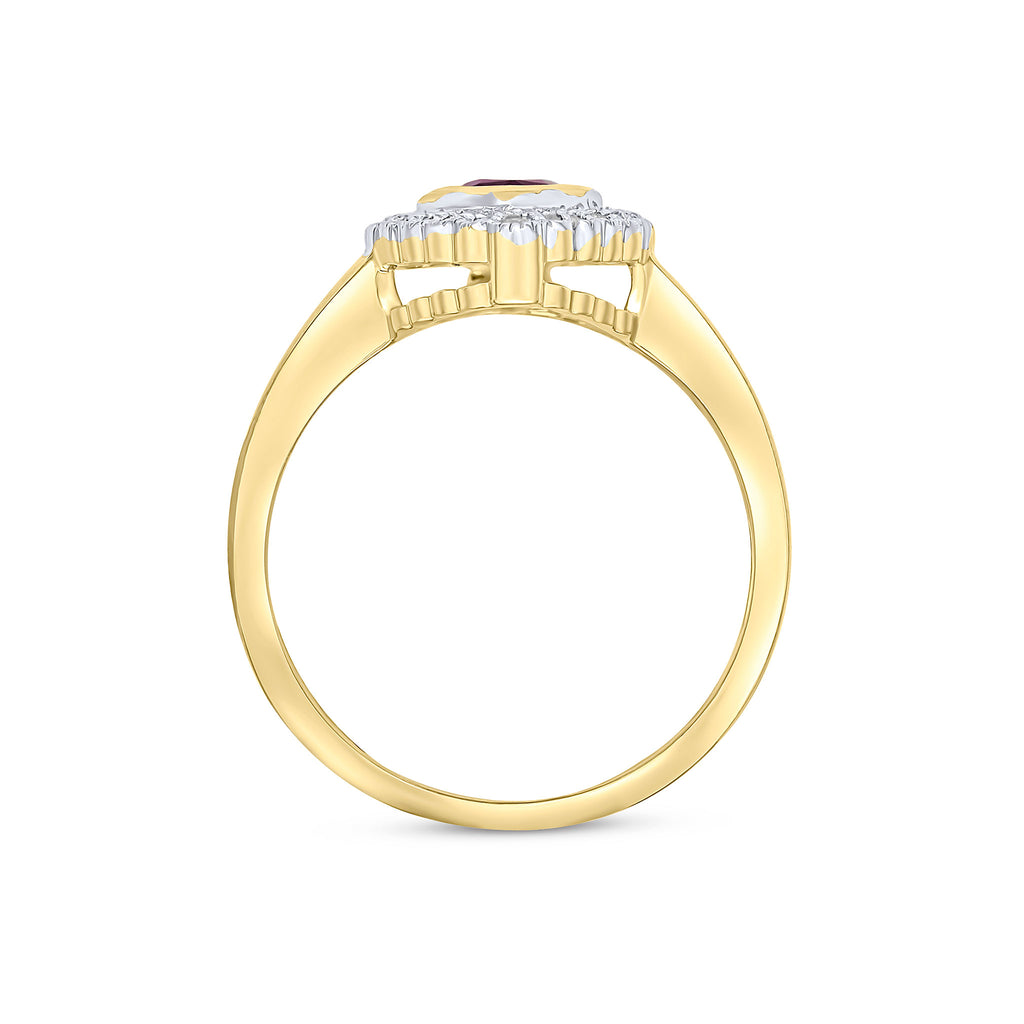 9CT Yellow Gold Rubover Pear Shaped Ruby & Millegrain Diamond Cluster Ring 7x5mm