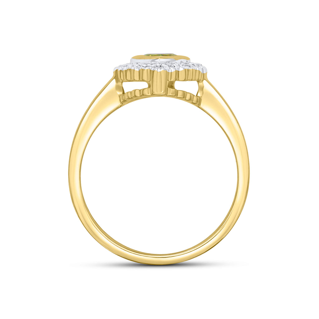 9CT Yellow Gold Rubover Pear Shaped Peridot & Millegrain Diamond Cluster Ring 7x5mm