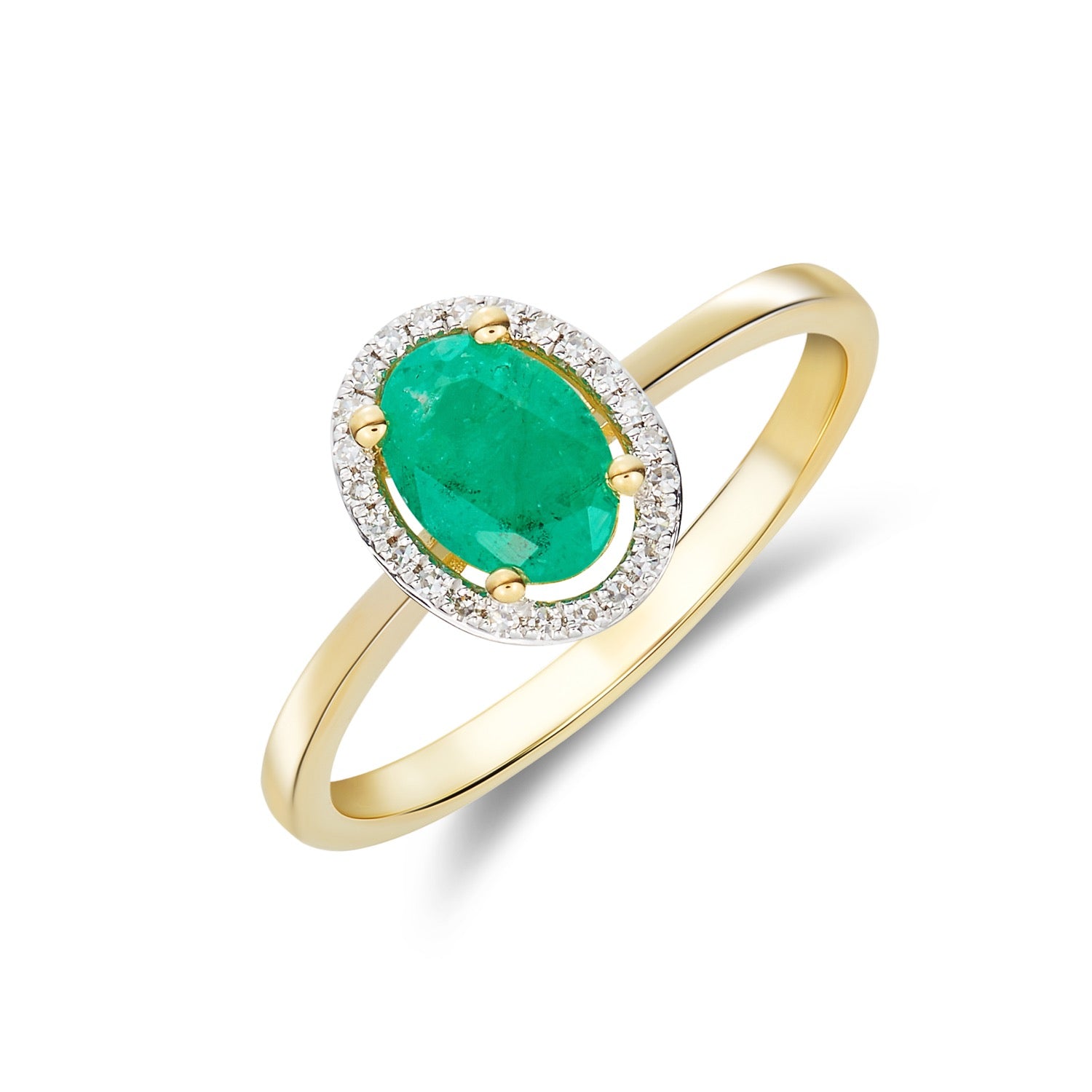 9CT Yellow Gold Oval Emerald & Diamond Halo Cluster Ring 7x5mm