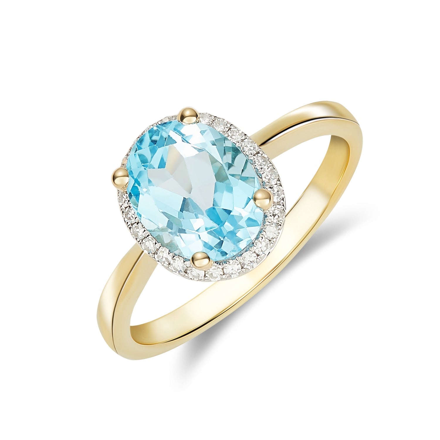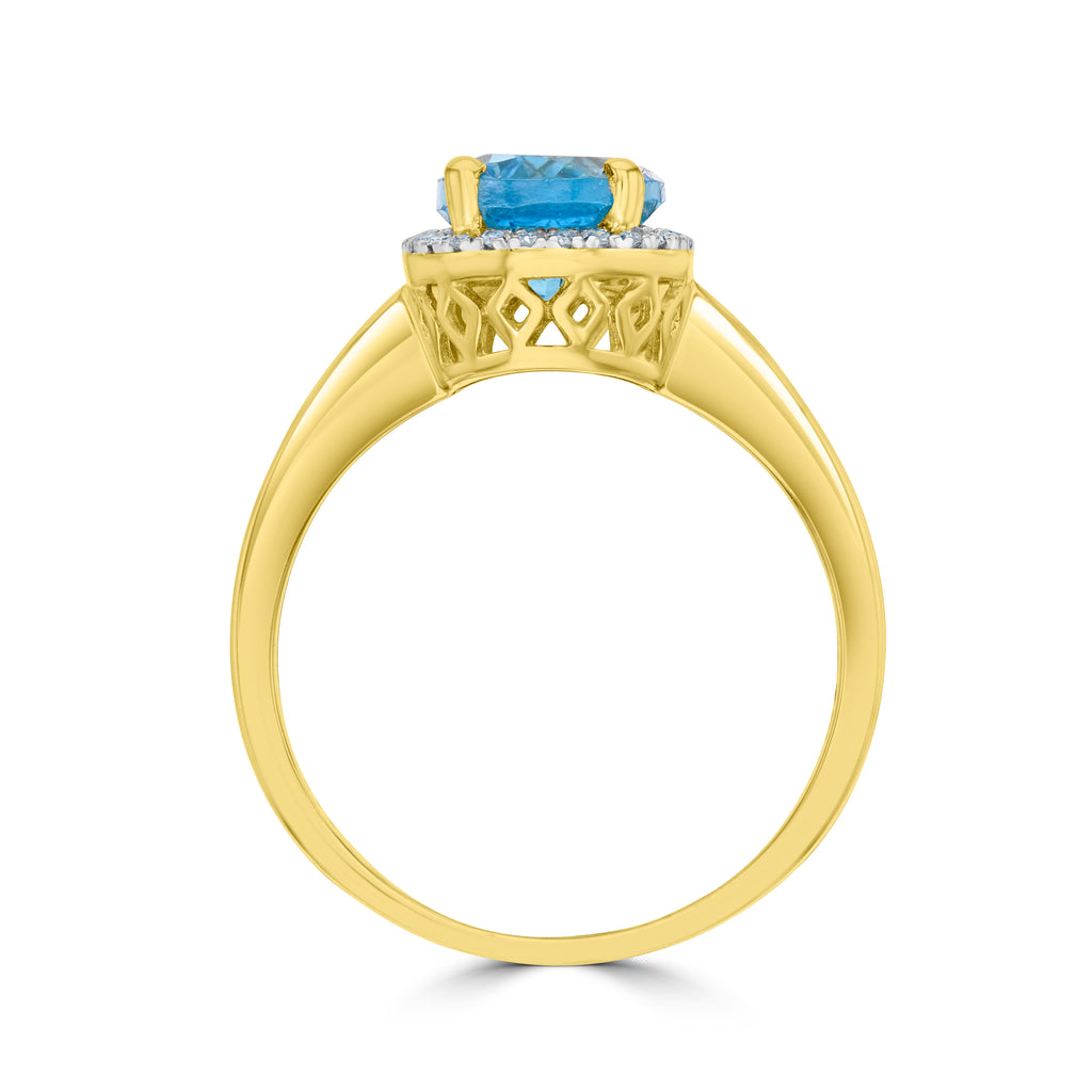 9CT Yellow Gold Oval Swiss Blue Topaz & Diamond Cluster Ring 9x7mm