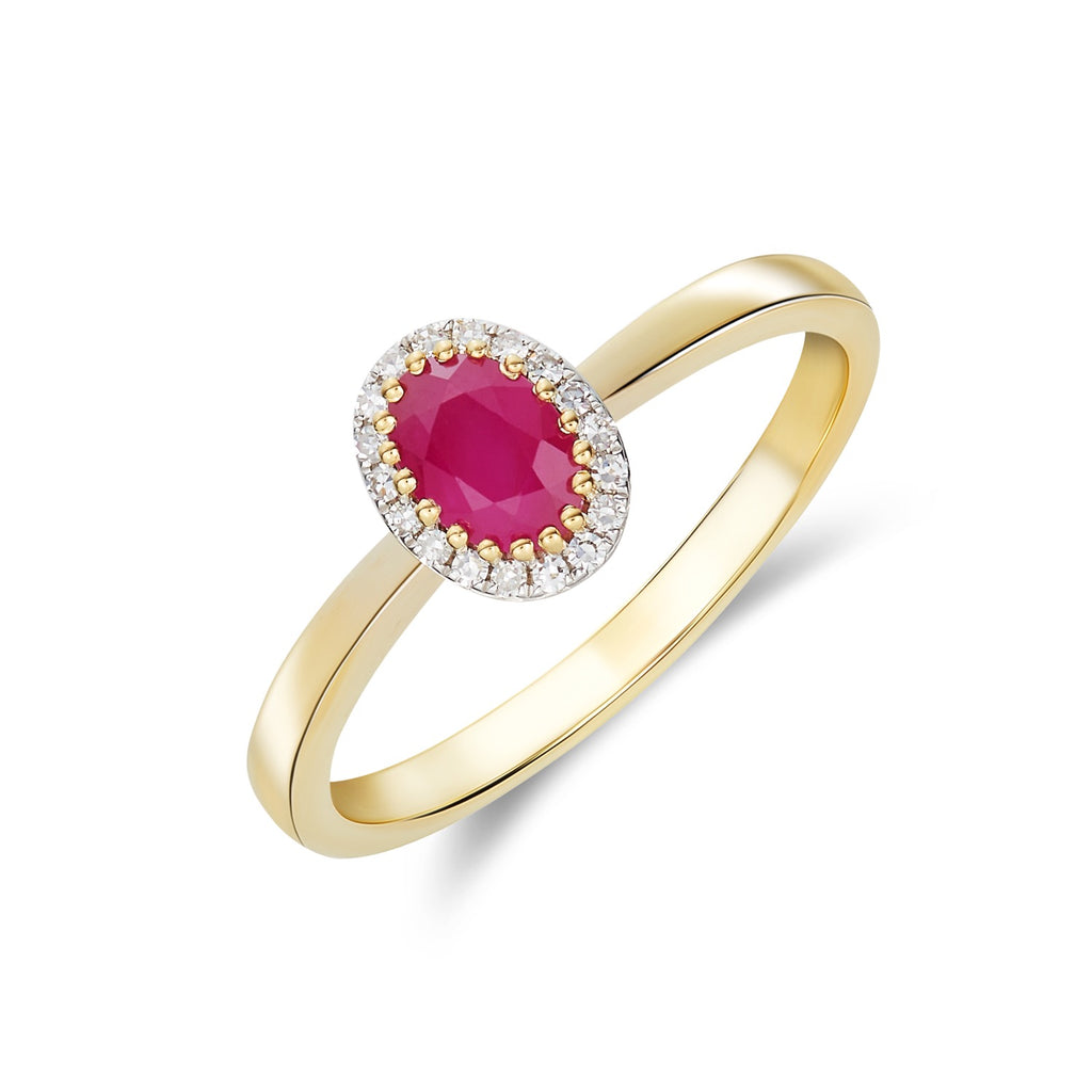 9CT Yellow Gold Oval Ruby & Diamond Cluster Ring 6x4mm