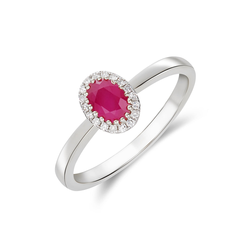 9CT White Gold Oval Ruby & Diamond Cluster Ring 7x5mm