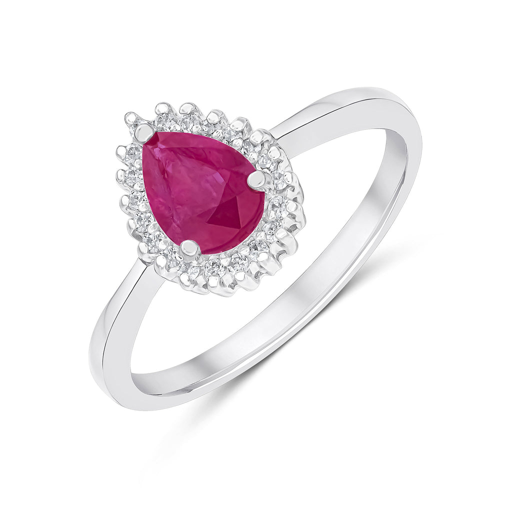 9CT White Gold Pear Shaped Ruby & Diamond Cluster Ring 7x5mm