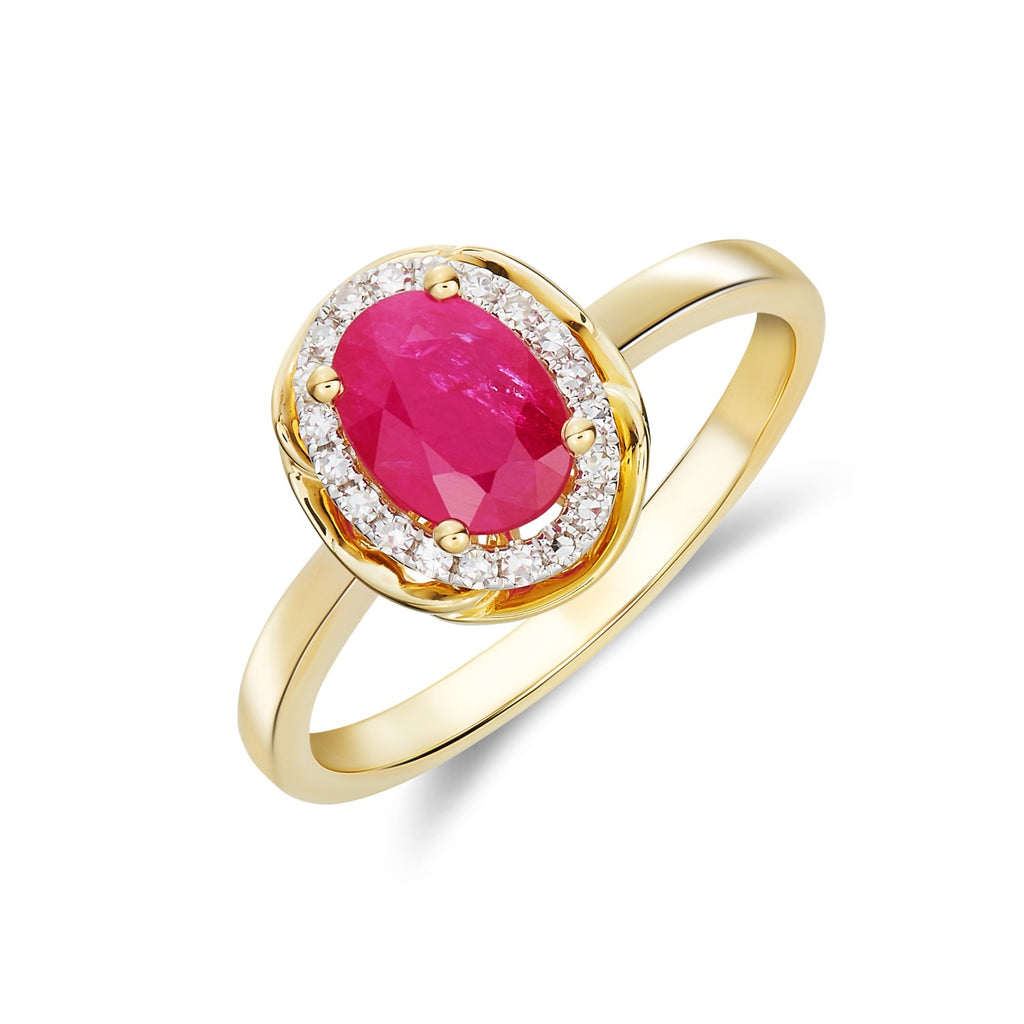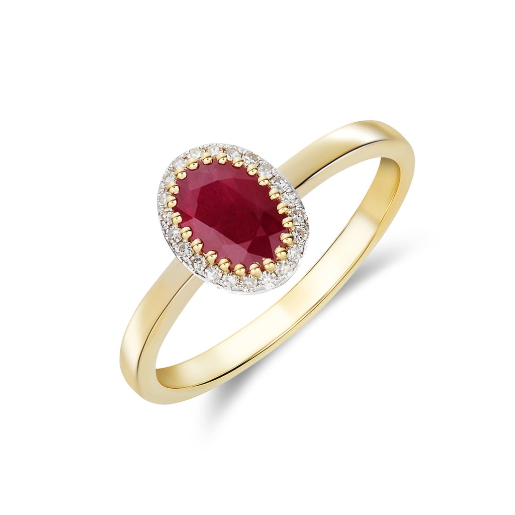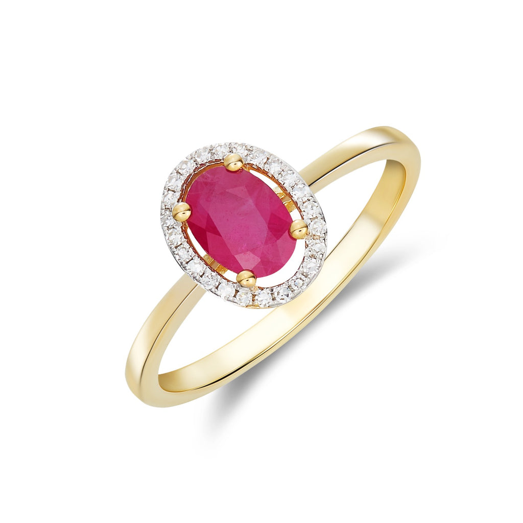 9CT Yellow Gold Oval Ruby & Diamond Cluster Ring 7x5mm