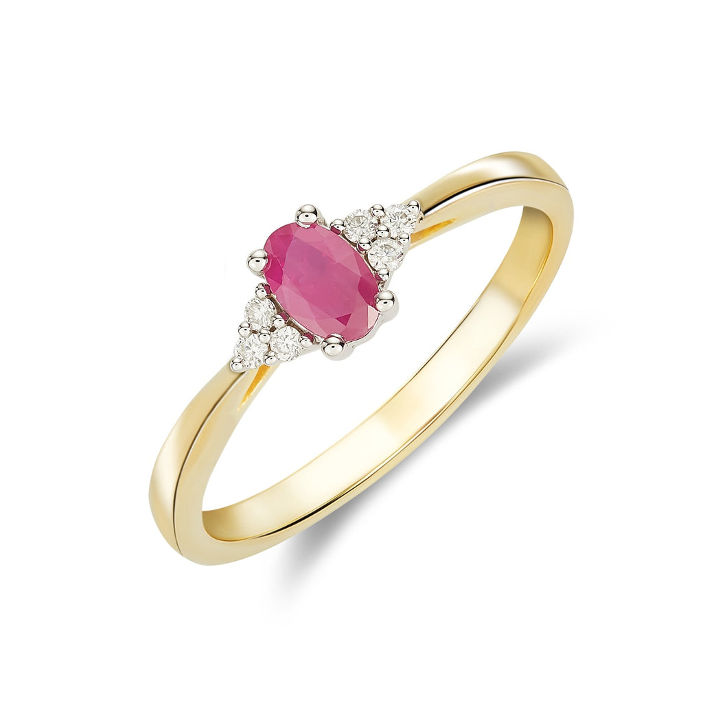 9CT Yellow Gold Oval Ruby & Diamond Trefoil Ring 7x5mm