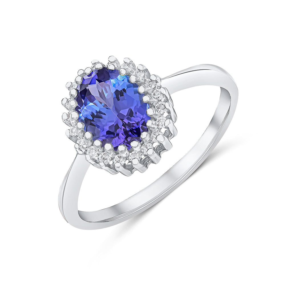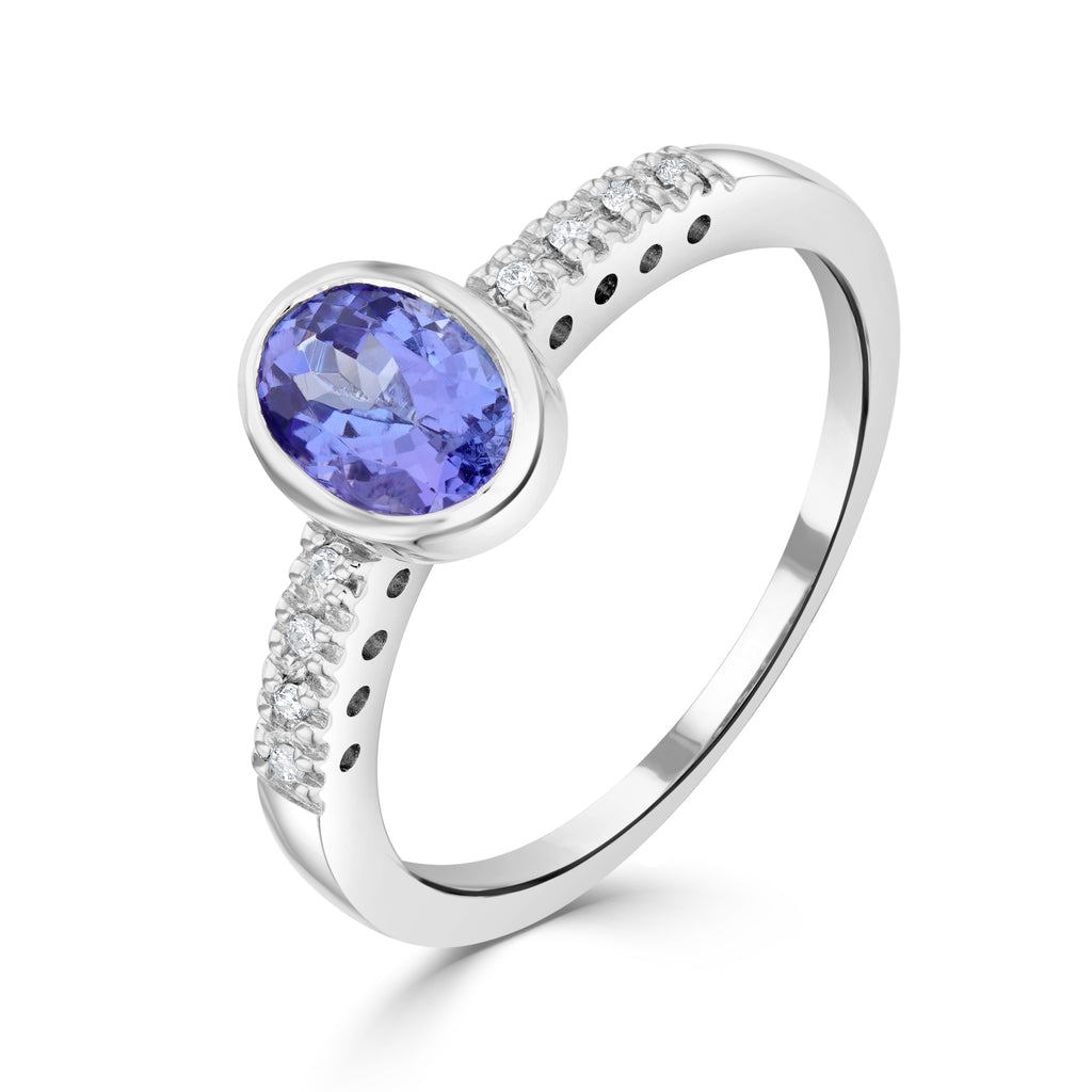 9CT White Gold Oval Tanzanite & Diamond Ring 7x5mm