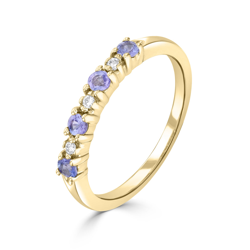 9CT Yellow Gold Round Tanzanite & Diamond 7 Stone 1/2 Eternity Ring