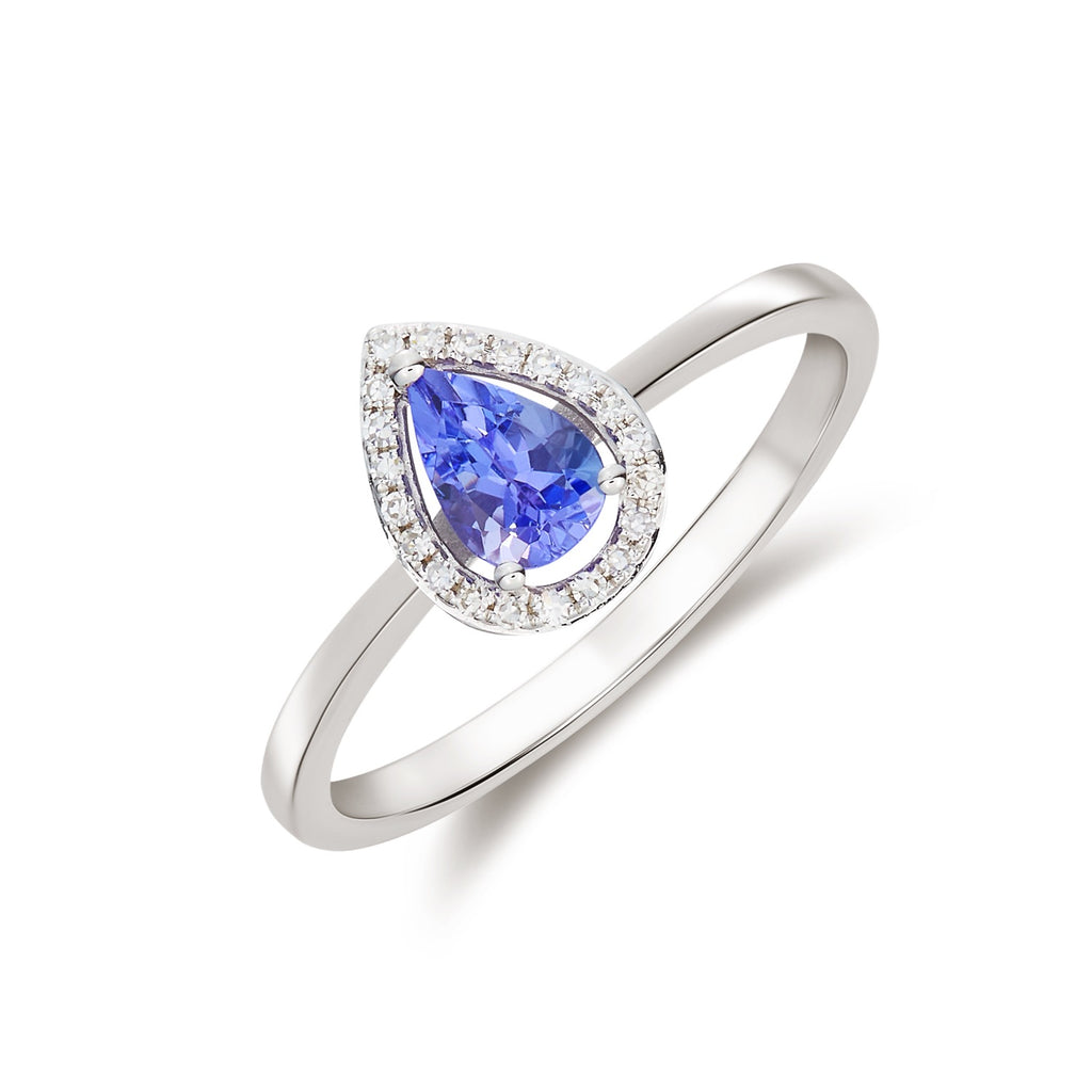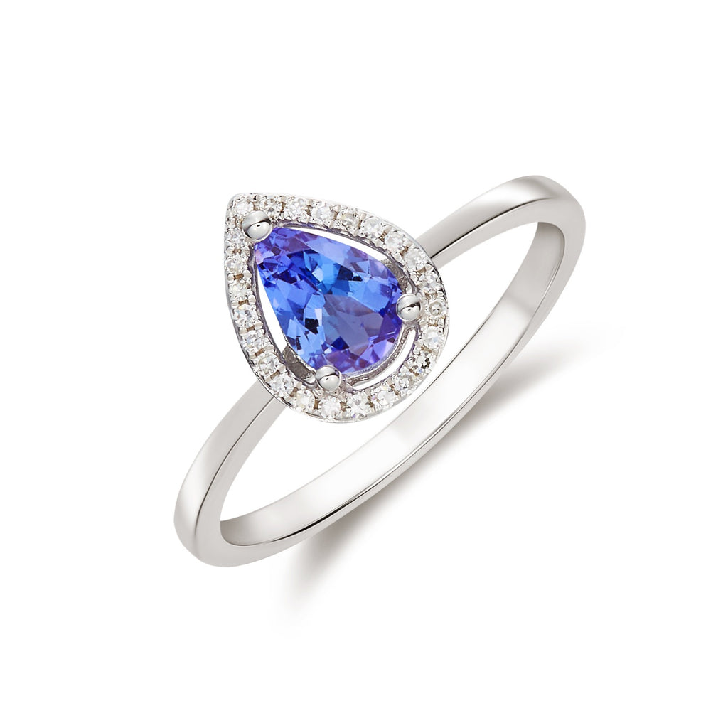 9CT White Gold Pear Shaped Tanzanite & Diamond Halo Cluster Ring 7x5mm