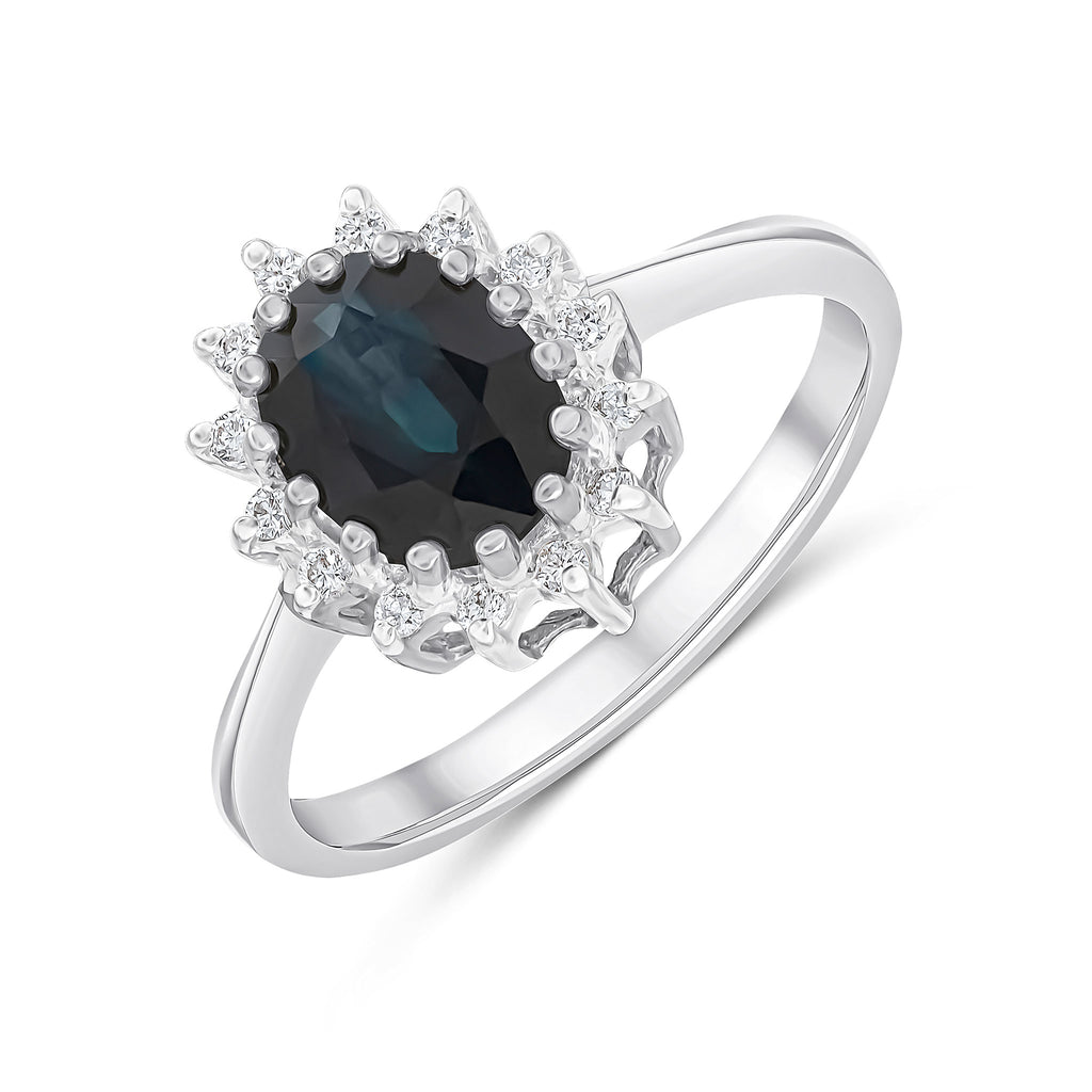 9CT White Gold Oval Blue Sapphire & Diamond Cluster Ring 6x4mm