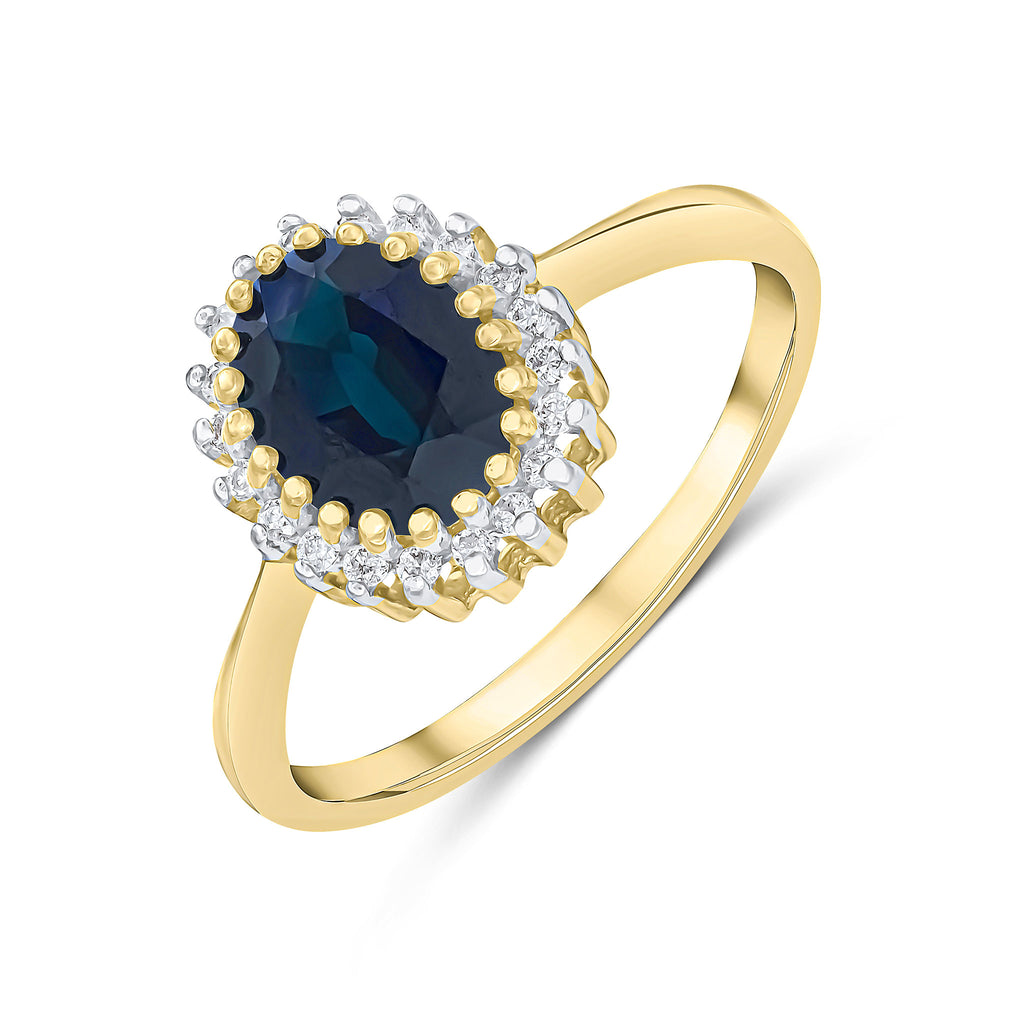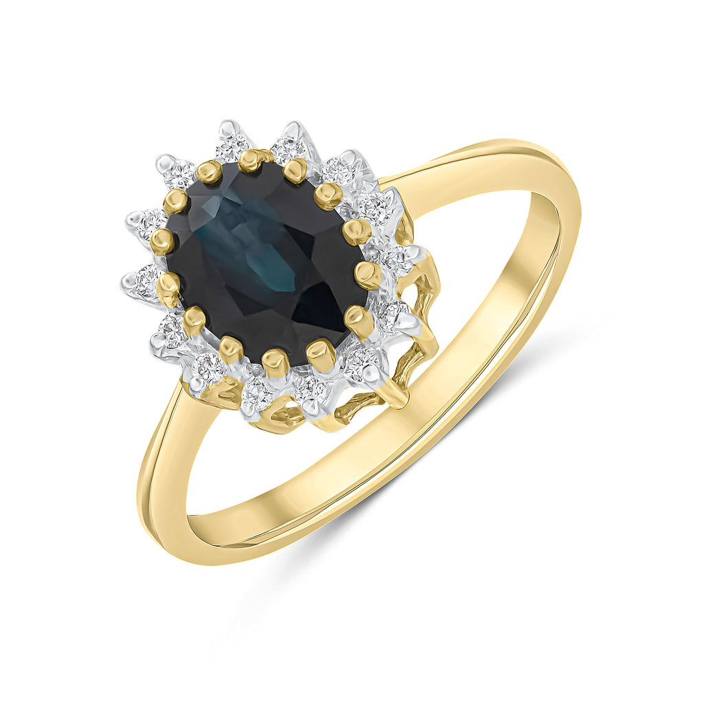 9CT Yellow Gold Oval Blue Sapphire & Diamond Cluster Ring 8x6mm