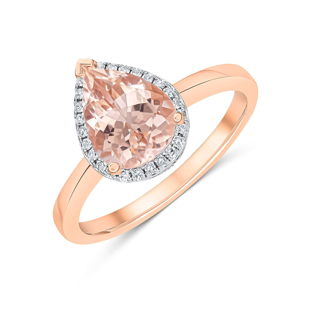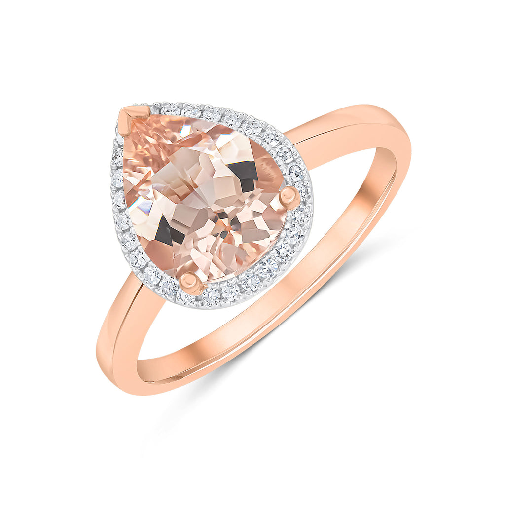 9CT Rose Gold Pear Shaped Morganite & Diamond Cluster Ring 7x5mm
