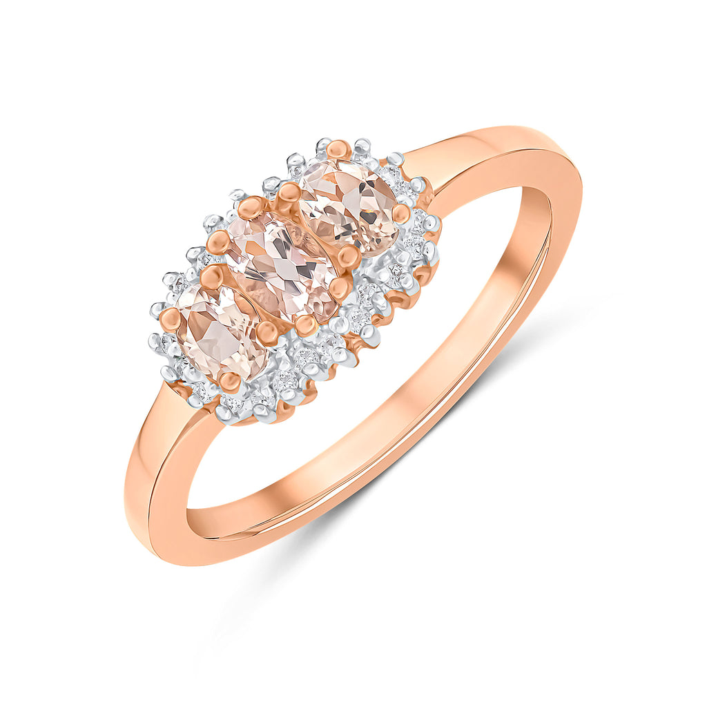 9CT Rose Gold Oval Morganite & Diamond Triple Cluster Ring