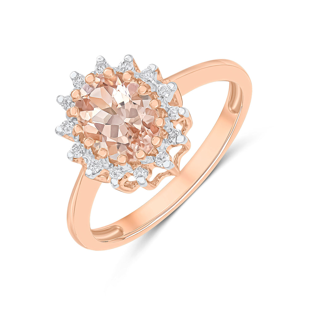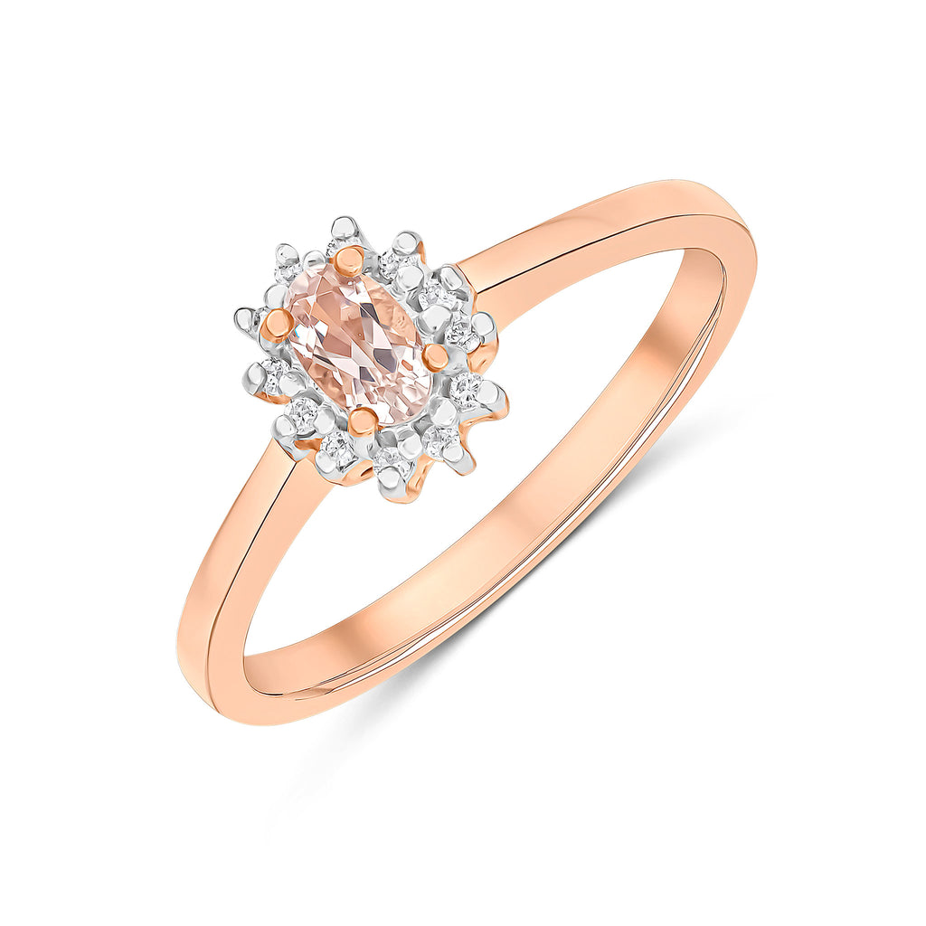 9CT Rose Gold Oval Morganite & Diamond Cluster Ring 6X4mm