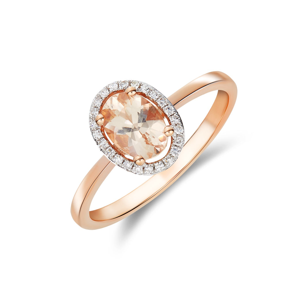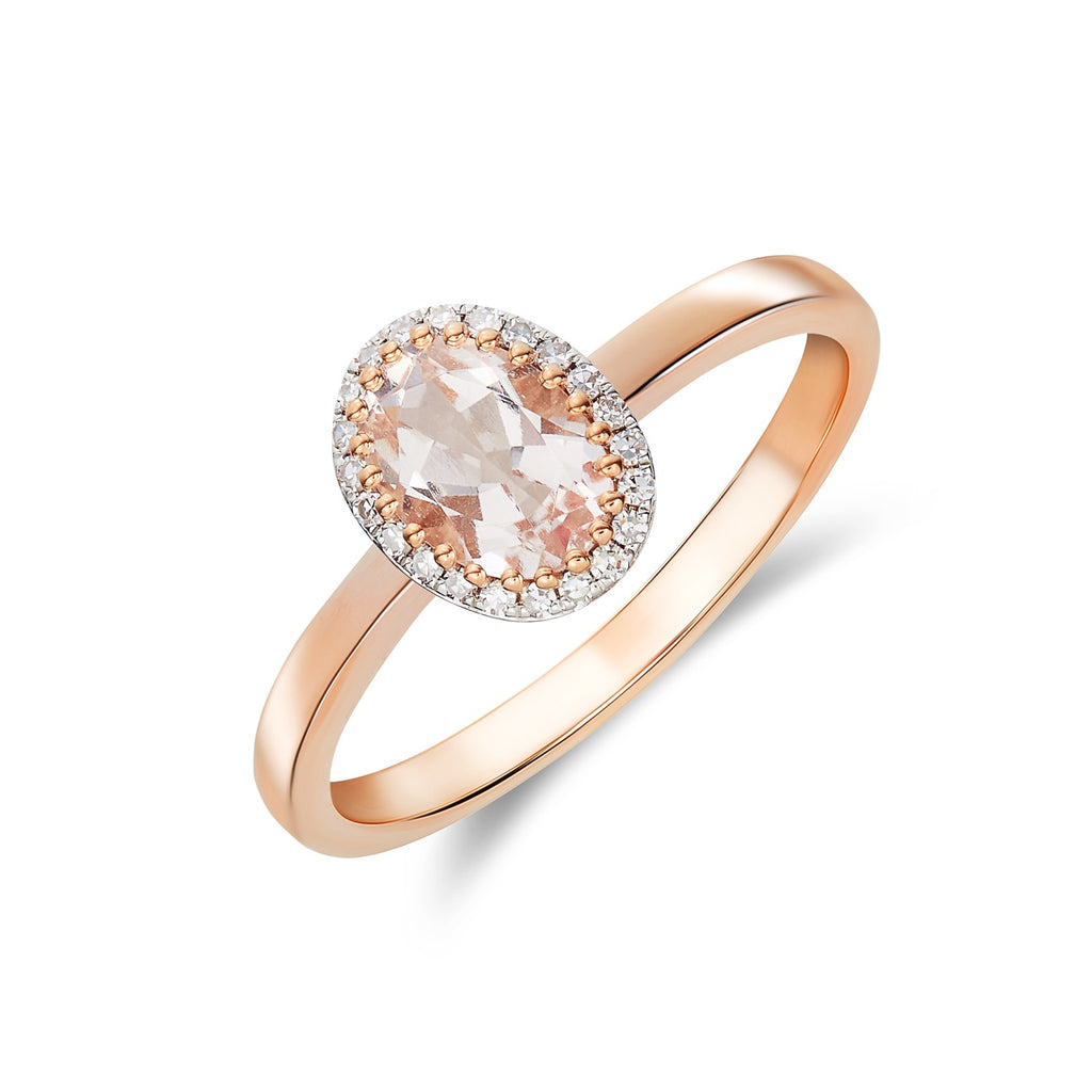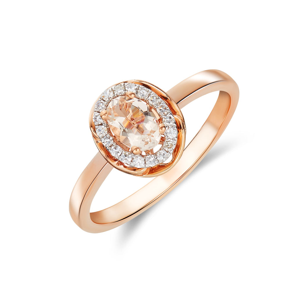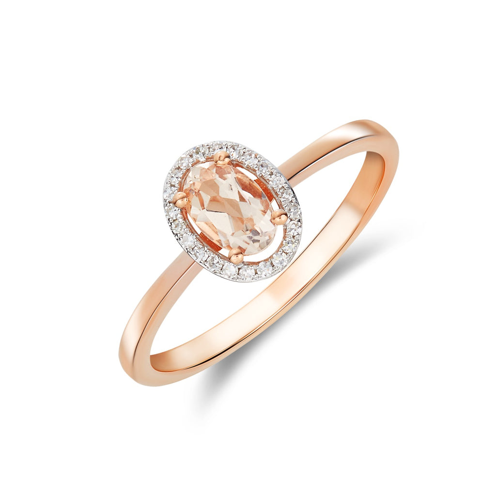 9CT Rose Gold Oval Morganite & Diamond Ring 7x5mm