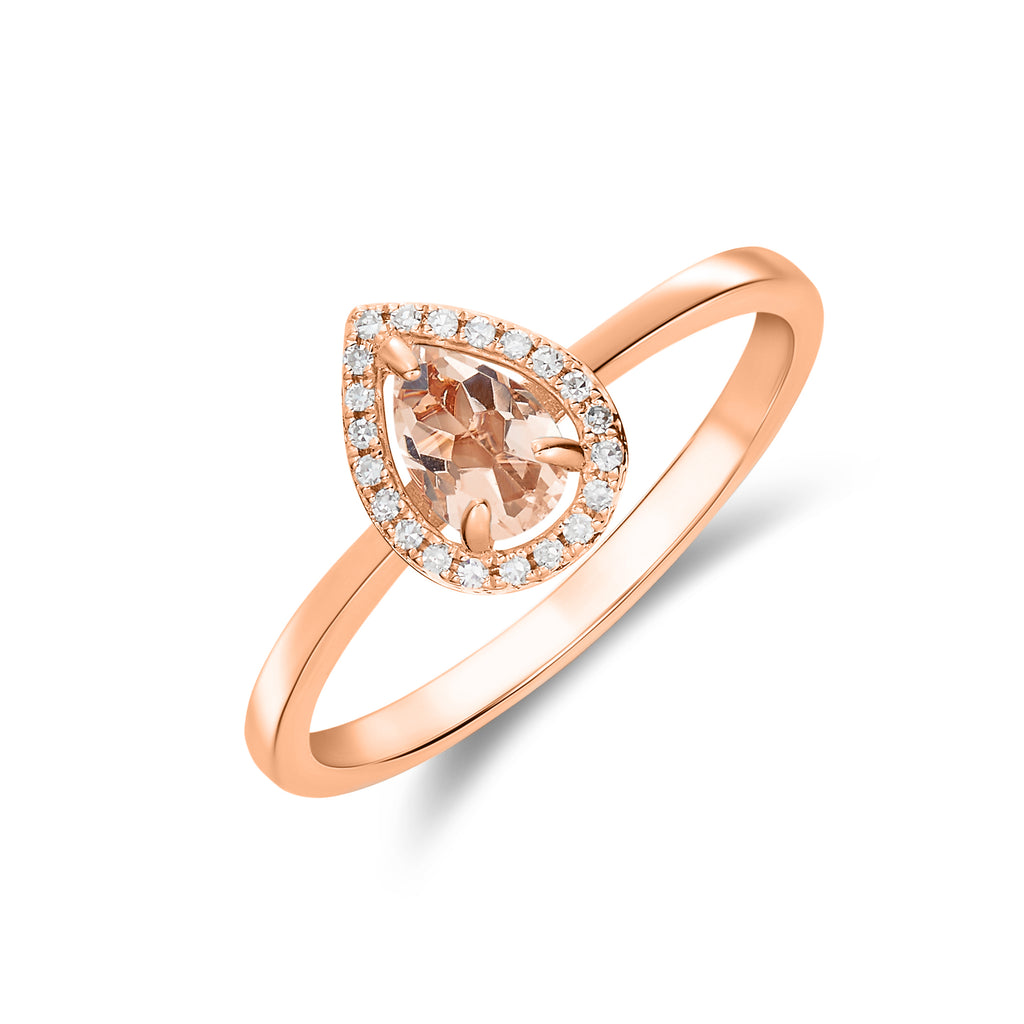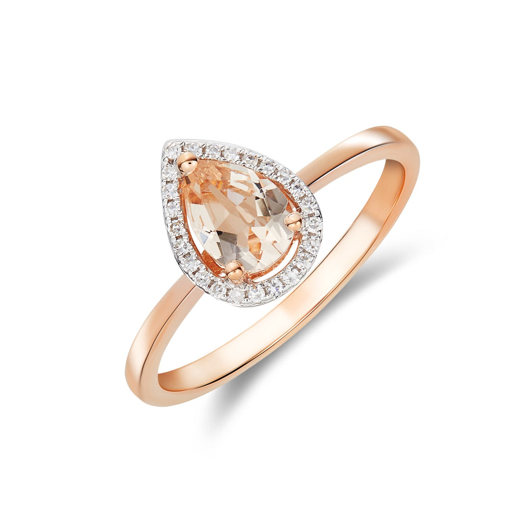 9CT Rose Gold Pear Shaped Morganite & Diamond Halo Cluster Ring 6x4mm