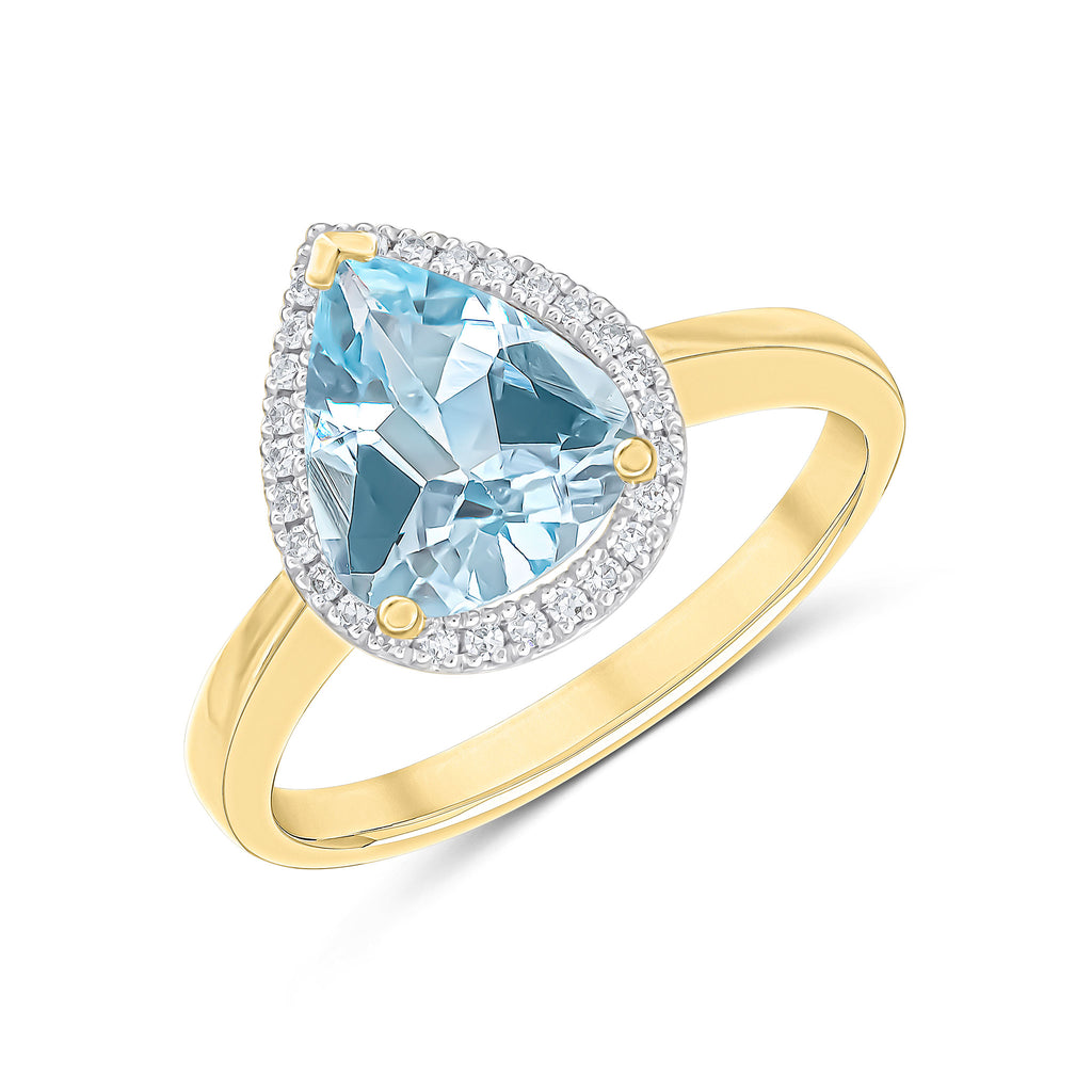 9CT Yellow Gold Pear Shaped Aquamarine & Diamond Cluster Ring 10x8mm