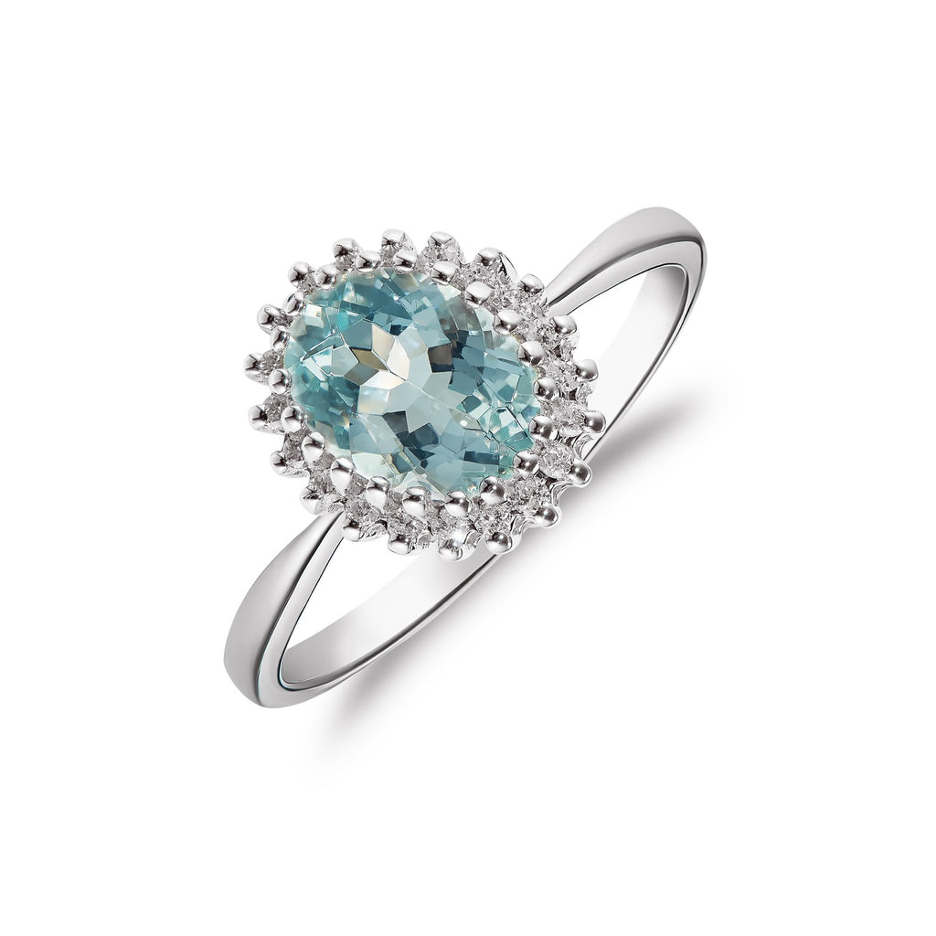9CT White Gold Pear Shaped Aquamarine & Diamond Ring 14x9mm