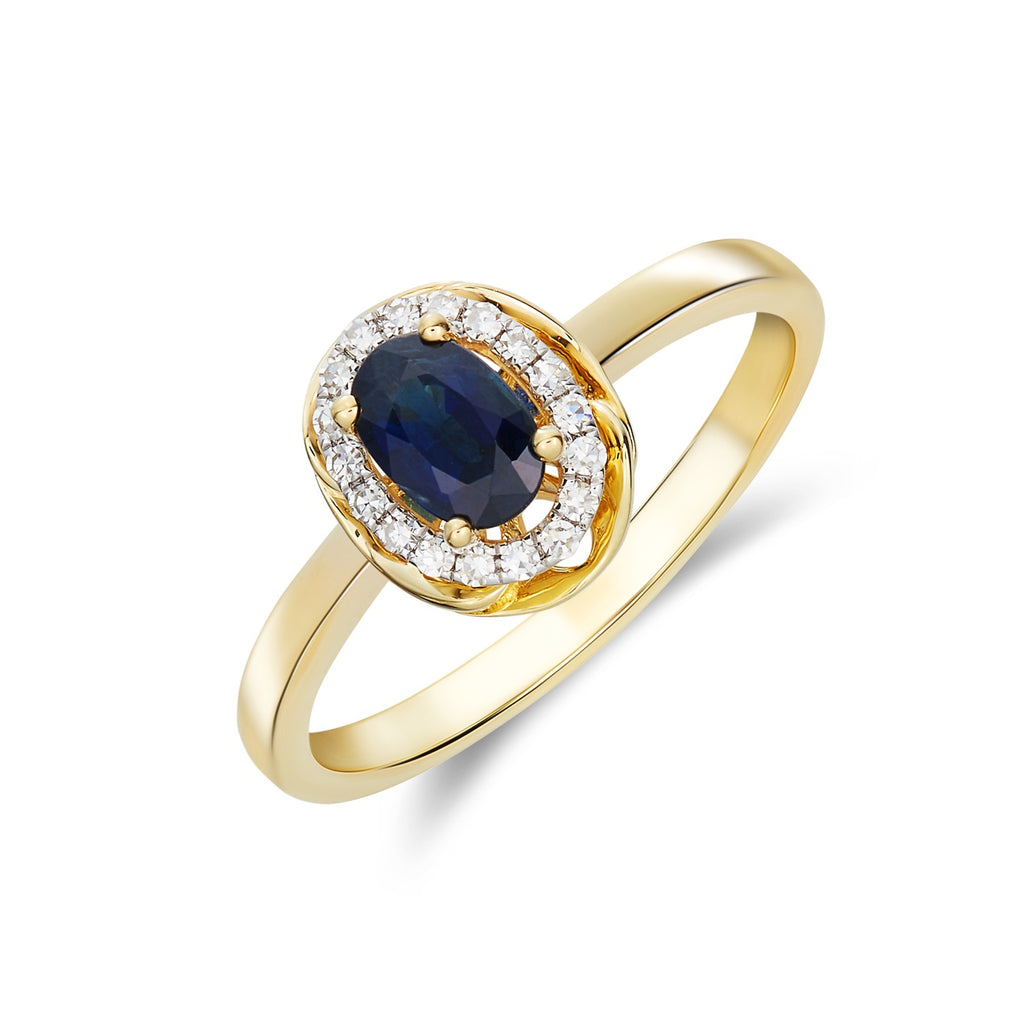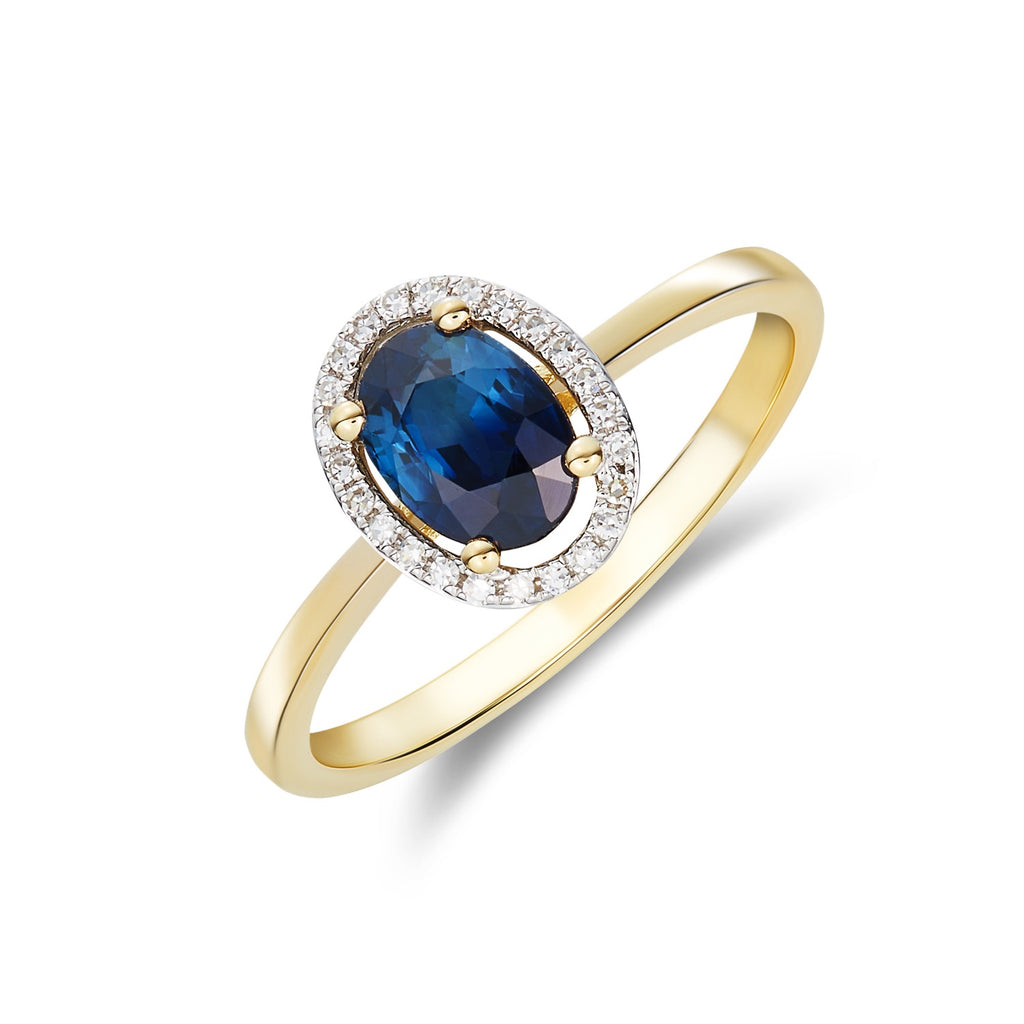 9CT Yellow Gold Oval Blue Sapphire & Diamond Ring 7x5mm