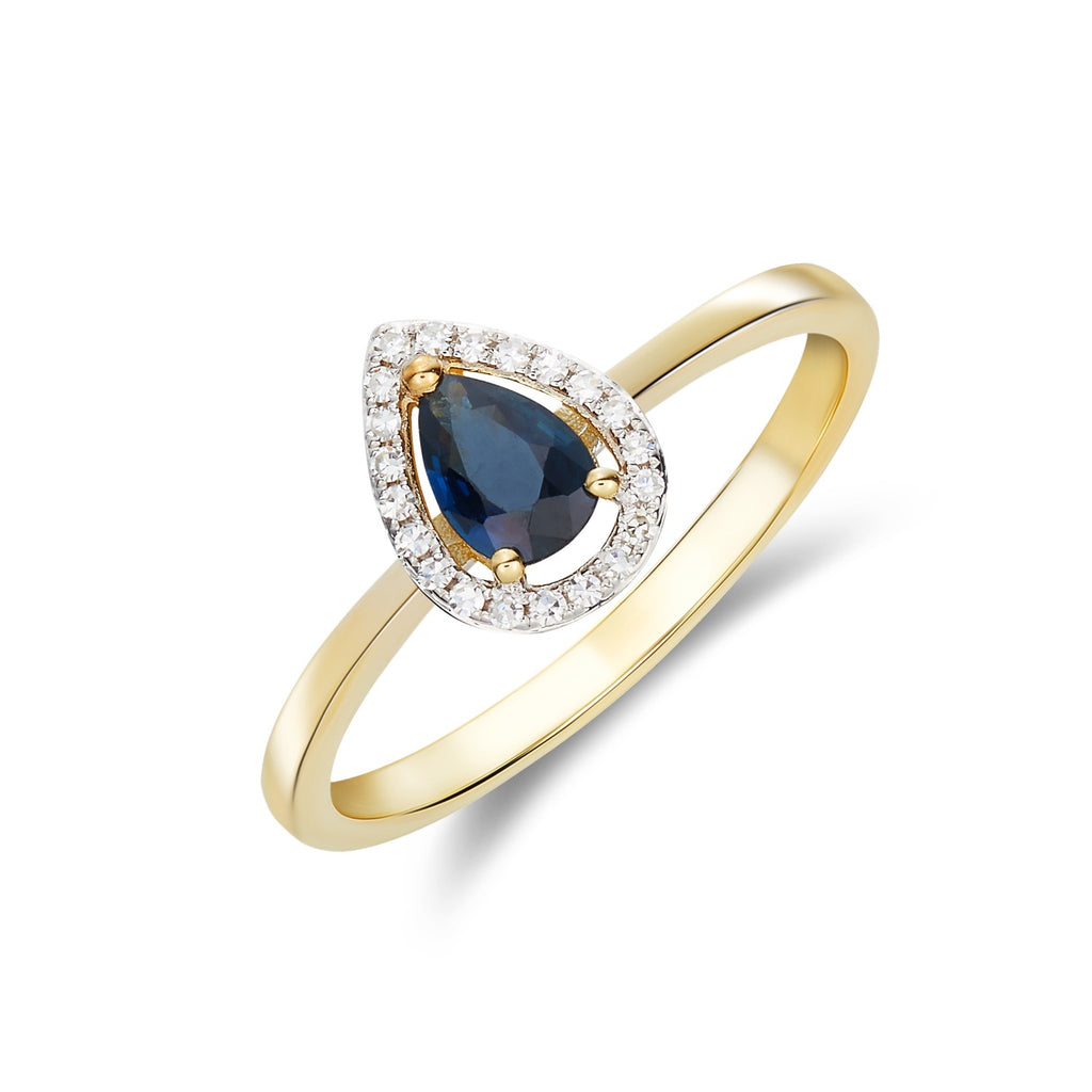 9CT Yellow Gold Pear Shaped Blue Sapphire & Diamond Cluster Ring 7x5mm