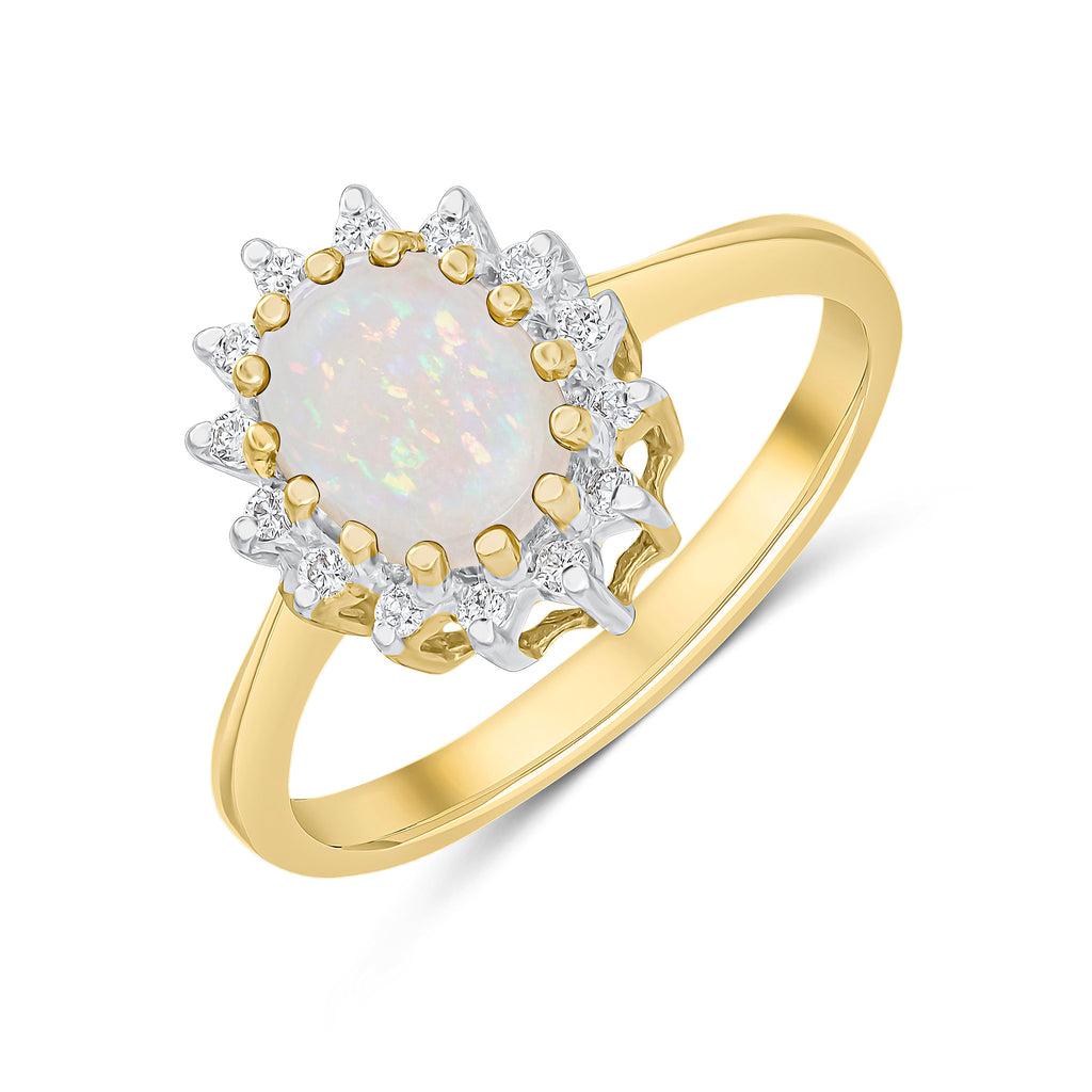 9CT Yellow Gold Oval Opal & Diamond Cluster Ring 8x6mm