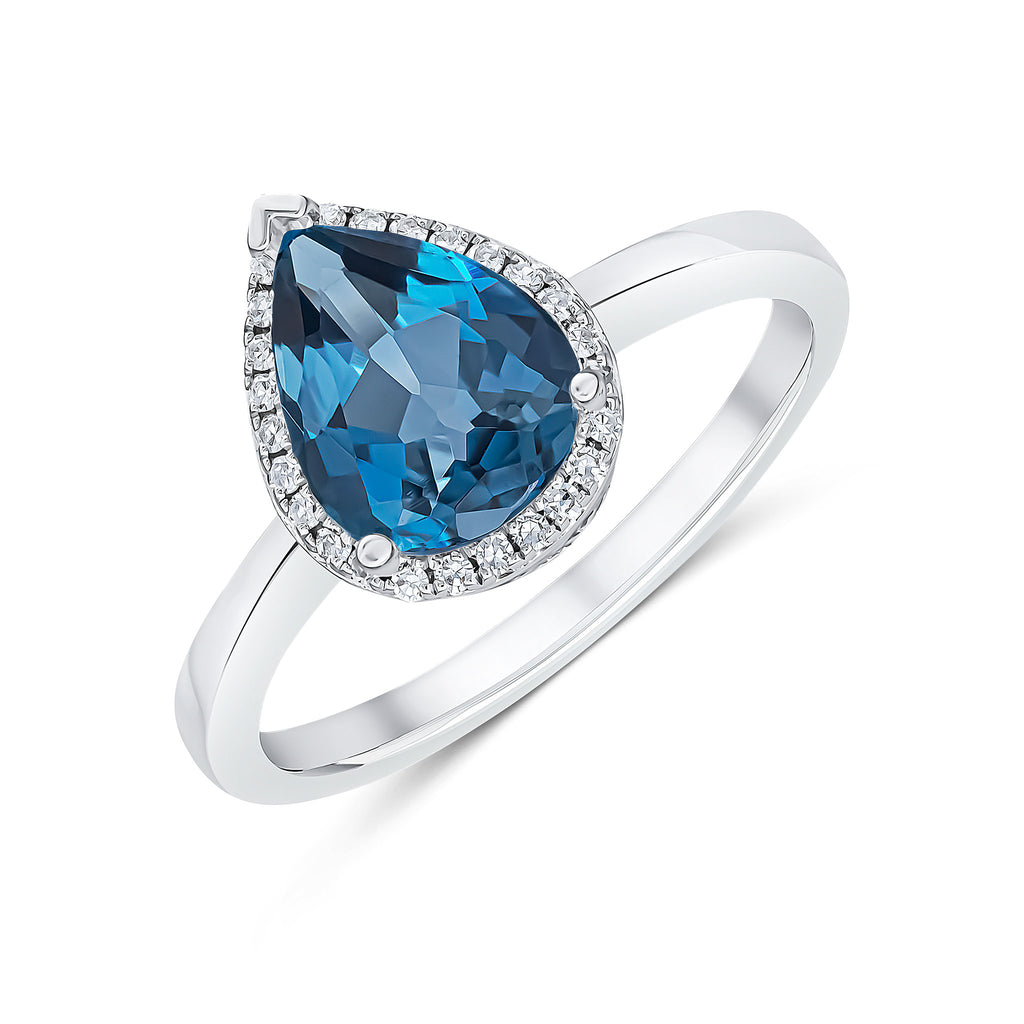 9CT White Gold Pear Shaped London Blue Topaz & Diamond Cluster Ring 9x7mm