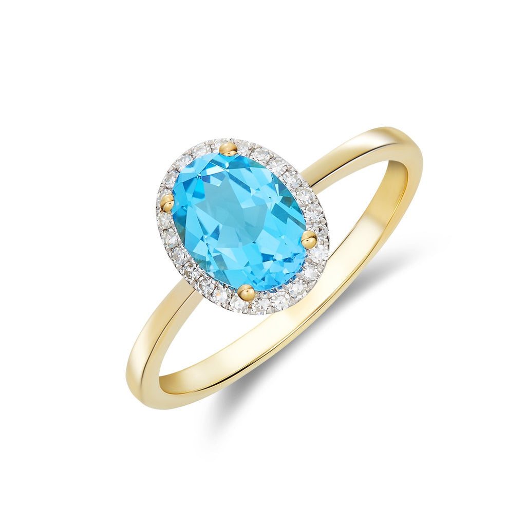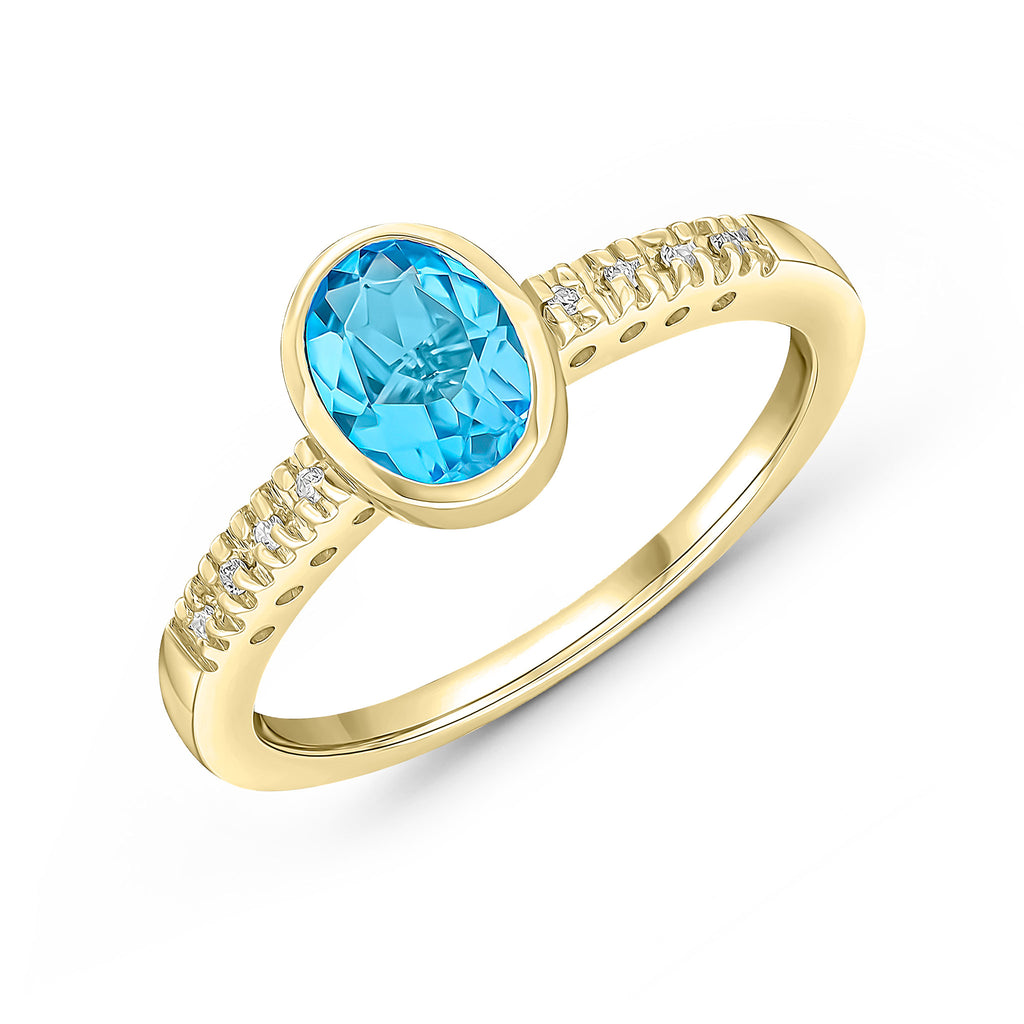 9CT Yellow Gold Oval Swiss Blue Topaz & Diamond Ring 7x5mm