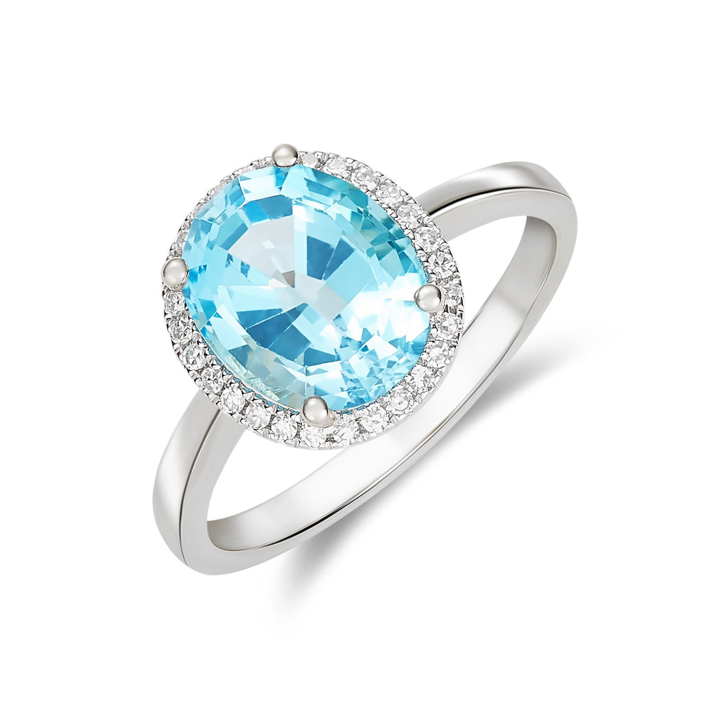 9CT White Gold Oval Swiss Blue Topaz & Diamond Cluster Ring 8x6mm