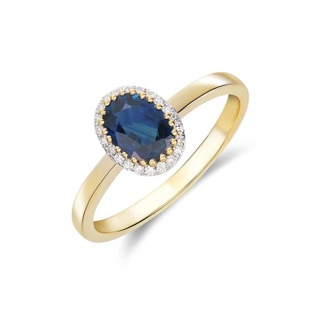 9CT Yellow Gold Oval Blue Sapphire & Diamond Cluster Ring 7x5mm