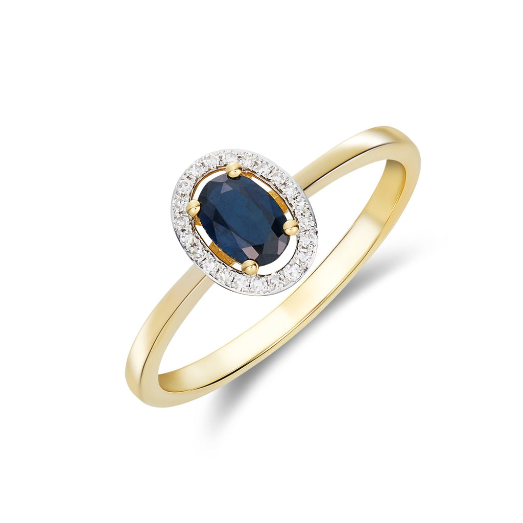 9CT Yellow Gold Oval Blue Sapphire & Diamond Cluster Ring 6x4mm