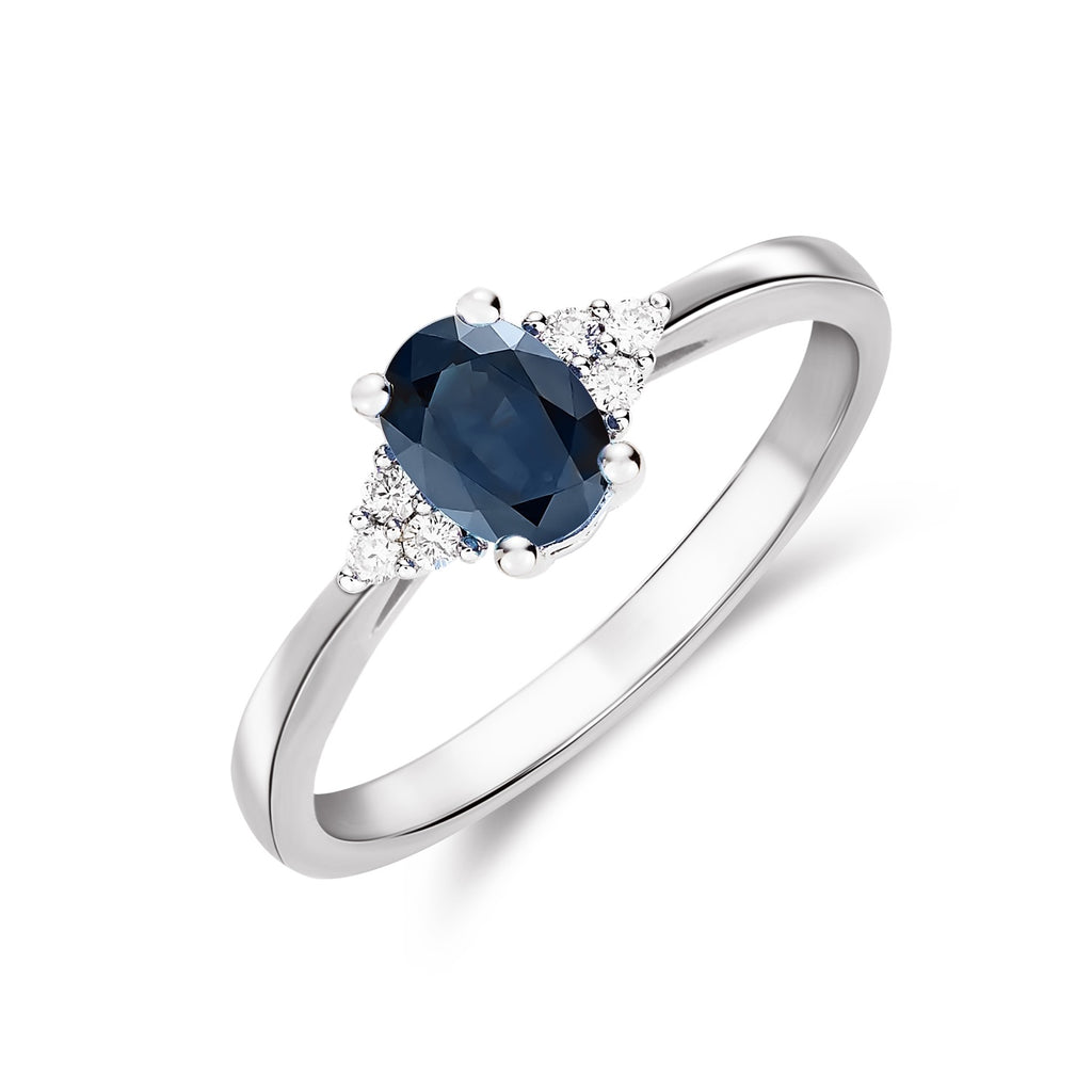 9CT White Gold Oval Sapphire & Diamond Trefoil Ring 7x5mm