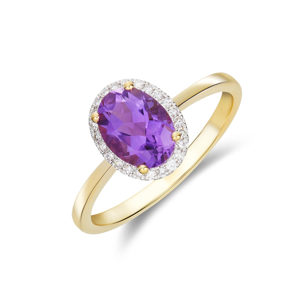 9CT Yellow Gold Oval Amethyst & Diamond Cluster Ring 8x6mm