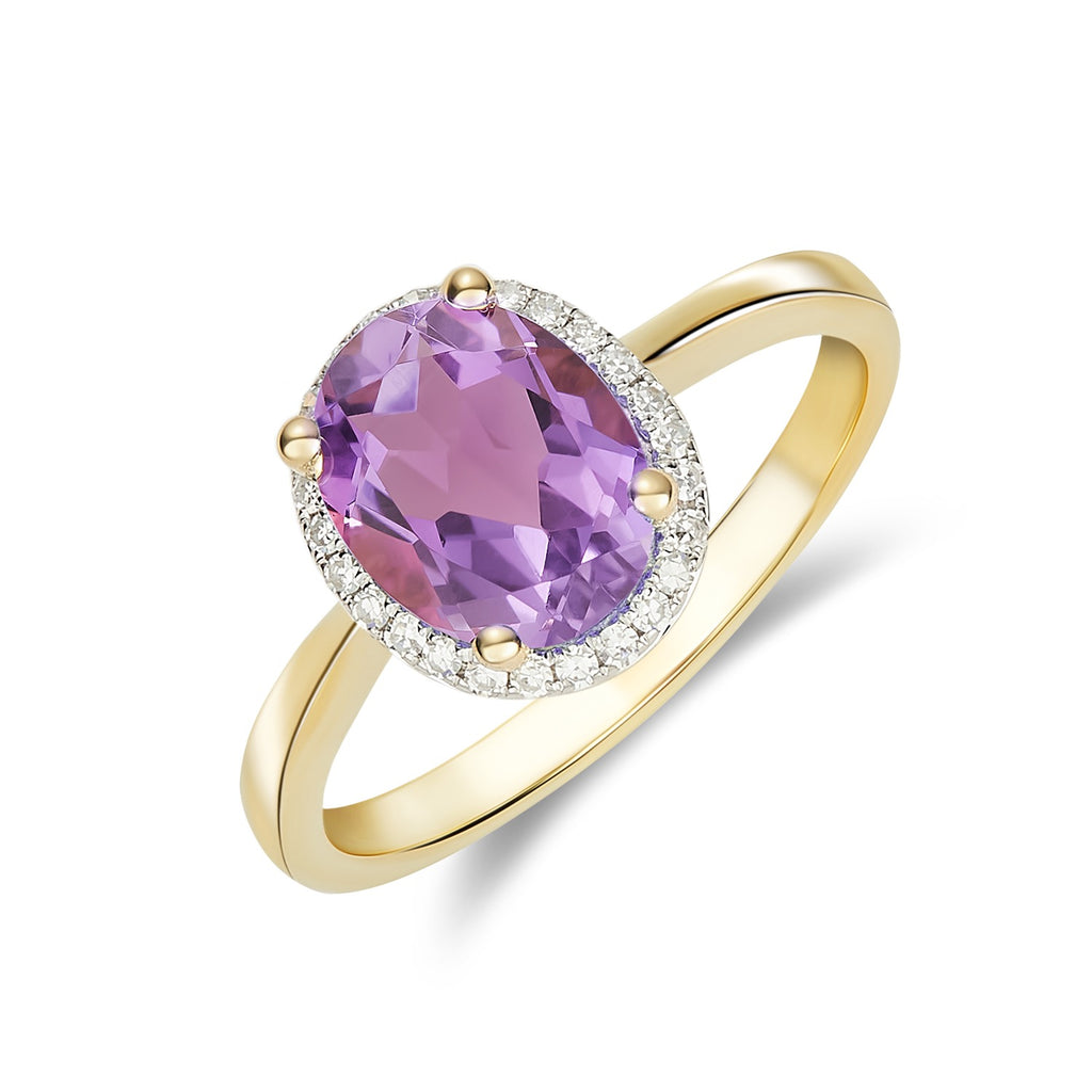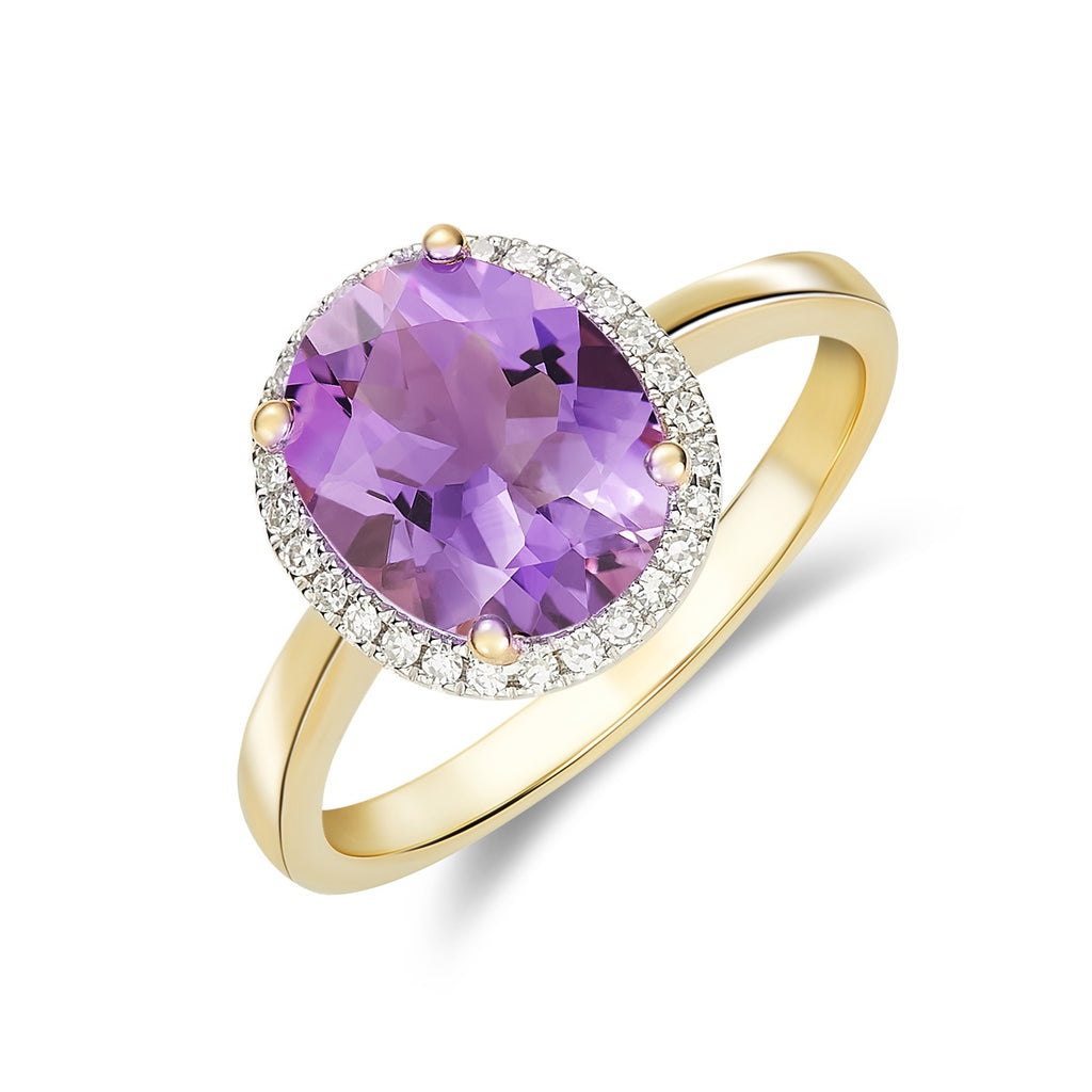 9CT Yellow Gold Oval Amethyst & Diamond Ring 12x10mm