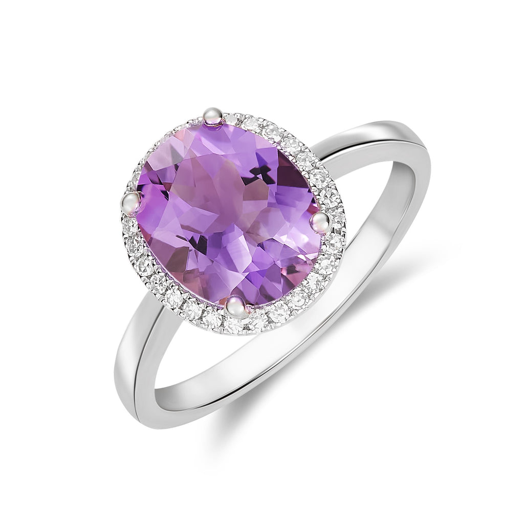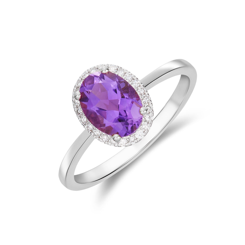 9CT White Gold Oval Amethyst & Diamond Cluster Ring 8x6mm