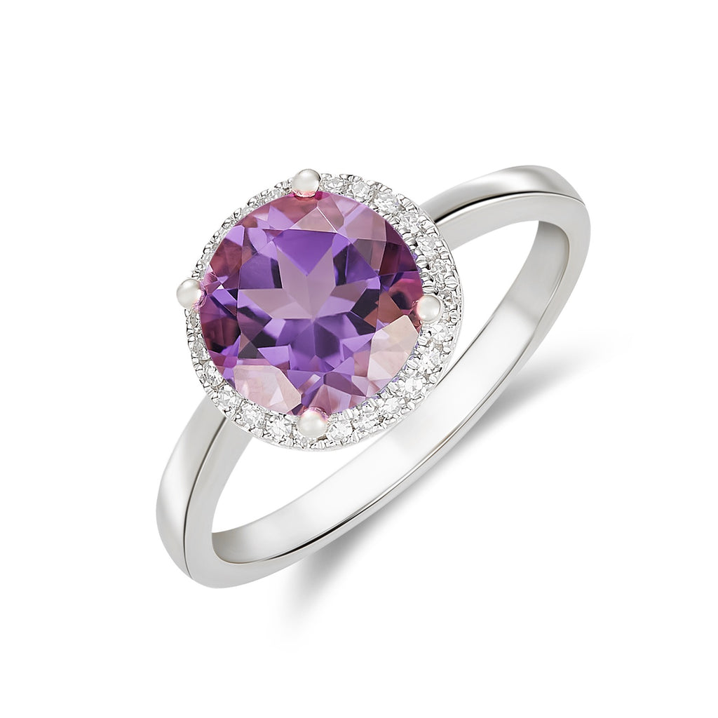 9CT White Gold Round Amethyst & Diamond Cluster Ring 8mm