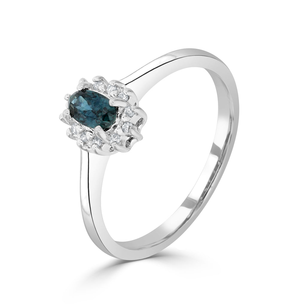 9CT White Gold Oval Blue Sapphire & Diamond Cluster Ring 5x3mm