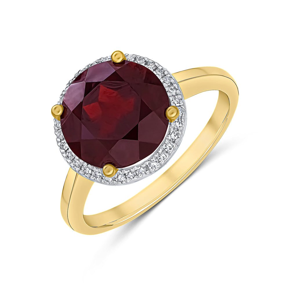 9CT Yellow Gold Round Garnet & Diamond Cluster Ring 10mm