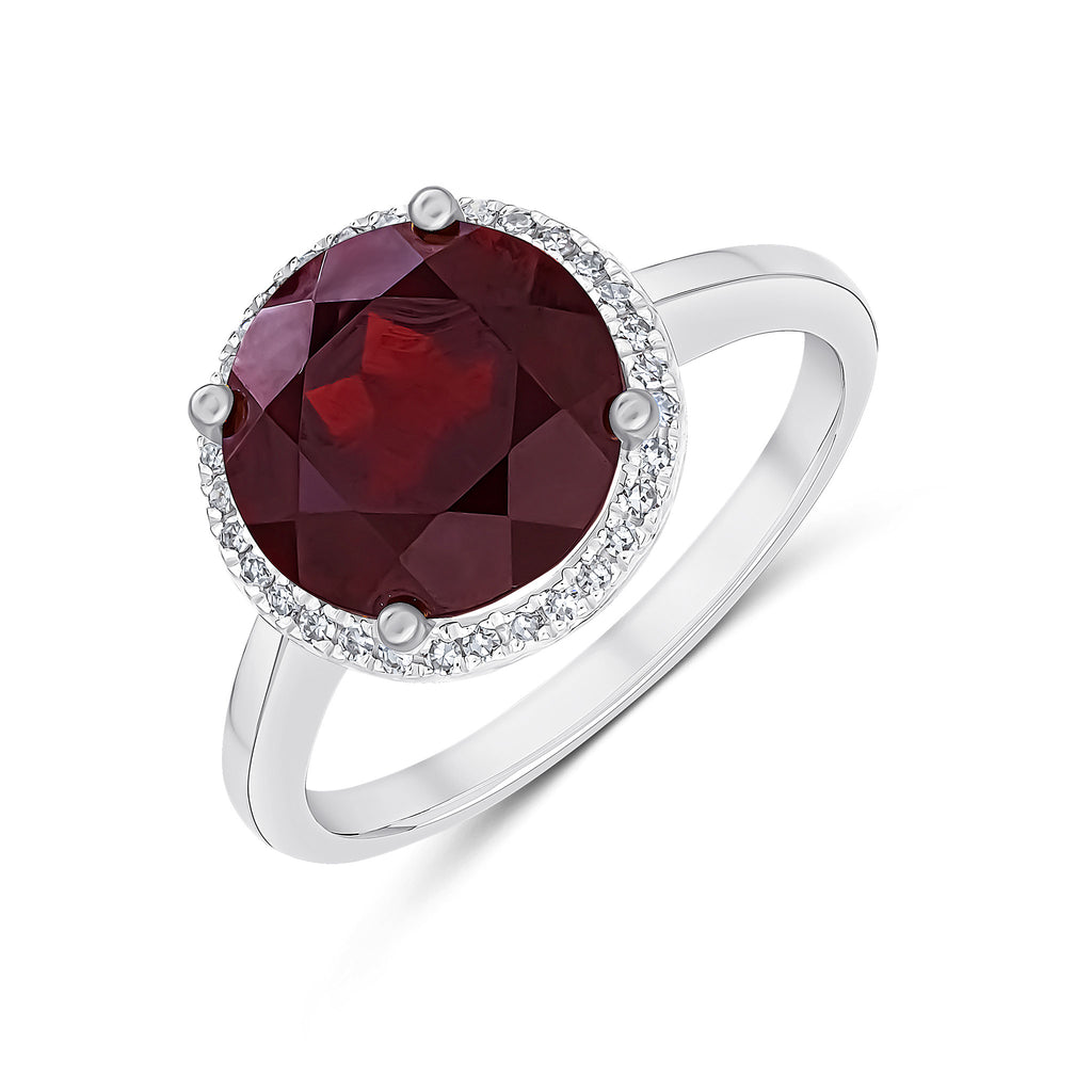 9CT White Gold Round Garnet & Diamond Cluster Ring 10mm
