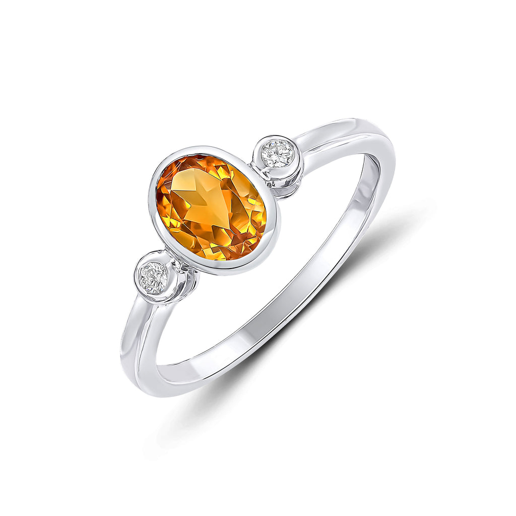 9CT White Gold Oval Citrine & Diamond Three Stone Rubover Ring